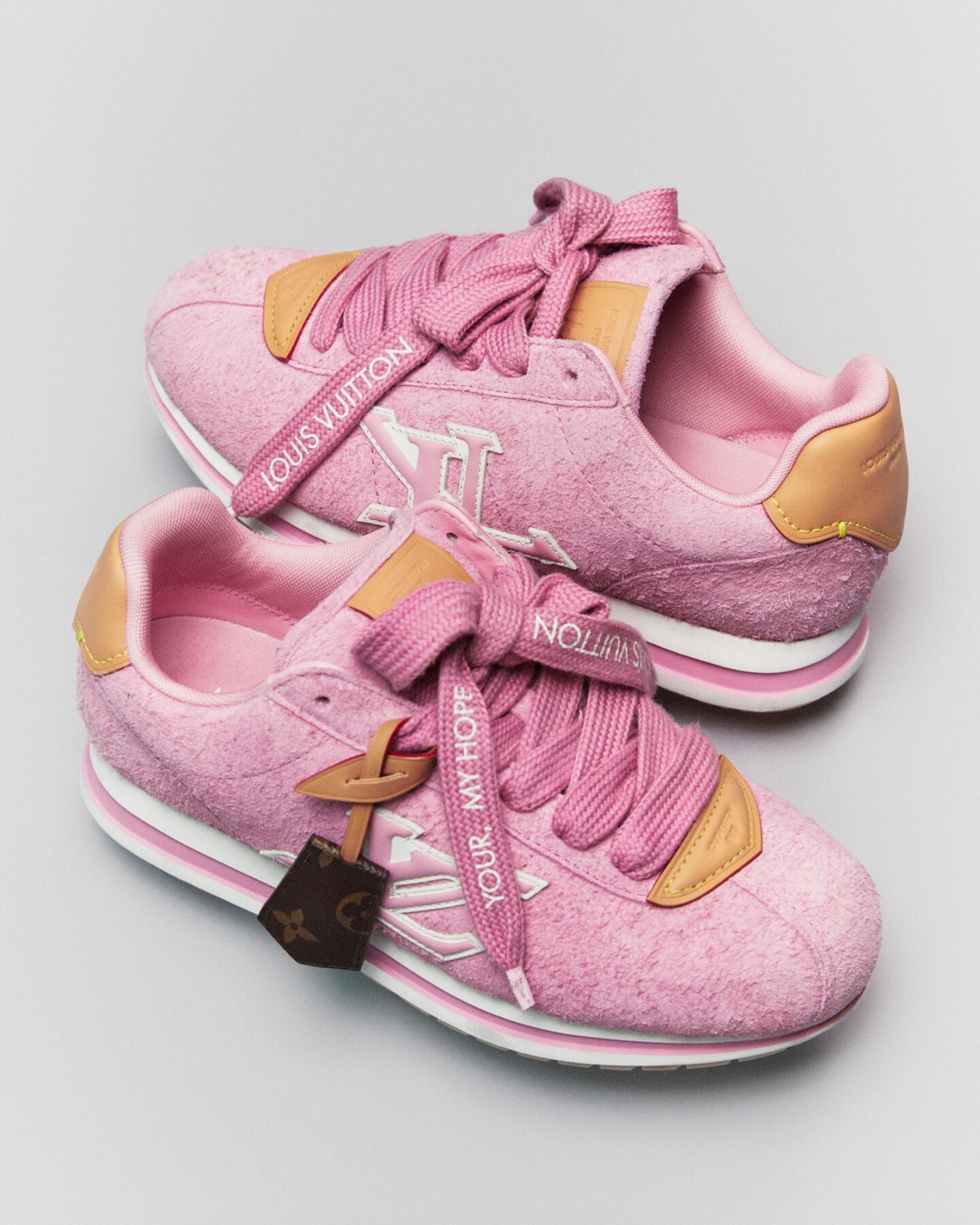 Se presentan en una combinación de rosa y blanco, reflejando el imaginario optimista del artista, en ante de becerro ultrasuave para la parte superior que descansa sobre una suela de goma elástica en capas. El diseño se completa con un sistema de cordones anchos y trenzados con detalles en forma de cloche-clé decorativa con el Monograma y la inscripción ‘Your, My Hope’ grabada en los extremos. Por último, surge una etiqueta textil inspirada en el bolso Speedy P9, integrada en la lengüeta, y un parche de piel con el logo exclusivo de la cápsula junto al sello Louis Vuitton Paris y la firma de j-hope.
