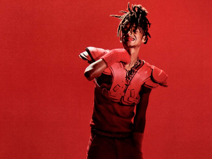 Jaden ha sido uno de los pocos hombres en el mainstream que ha usado la moda no para parecer más fuerte, más grande o más dominante, sino precisamente para exponer el cuerpo como algo frágil, bello y ambiguo. Siluetas pegadas, translúcidas, suaves, románticas, a veces casi femeninas. Eso conecta directamente con el tipo de erotismo que define a Louboutin: no el del poder bruto, sino el del fetiche, la vulnerabilidad y el deseo.
