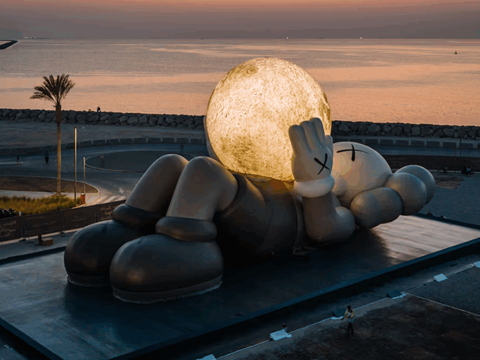 KAWS debuta en Abu Dhabi con una instalación luminosa que redefine la escala y el paisaje nocturno del desierto.