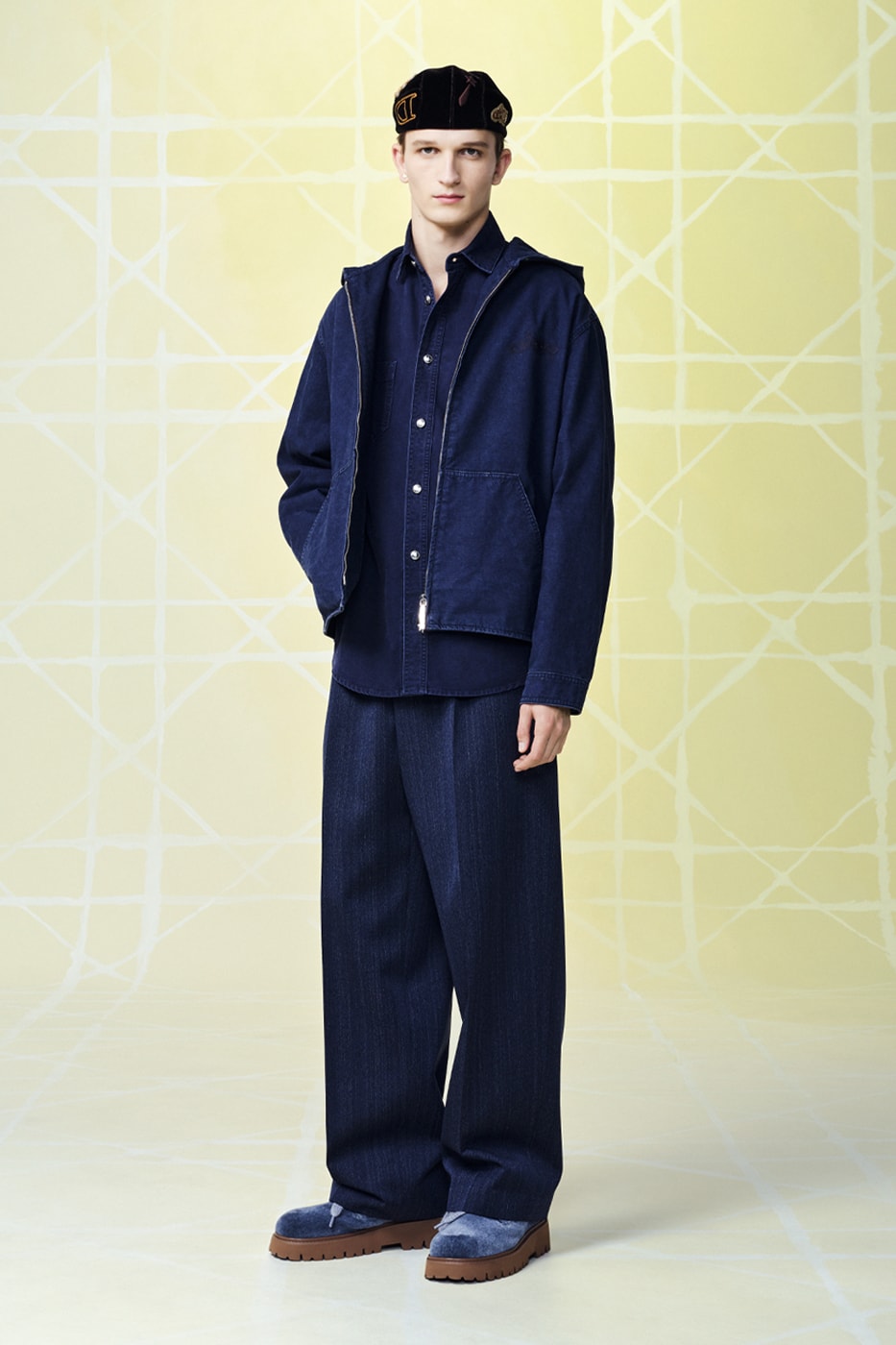 El tweed de leopardo se erige como el estampado estrella, presente en una camisa, unos shorts de corte relajado, una chaqueta con capucha y un bouson. Un guiño directo a la herencia de la Casa, pero revisitado desde un lugar más salvaje, tribal y contemporáneo: «donde el afrofuturismo y el historicismo Dior acaban encontrándose».