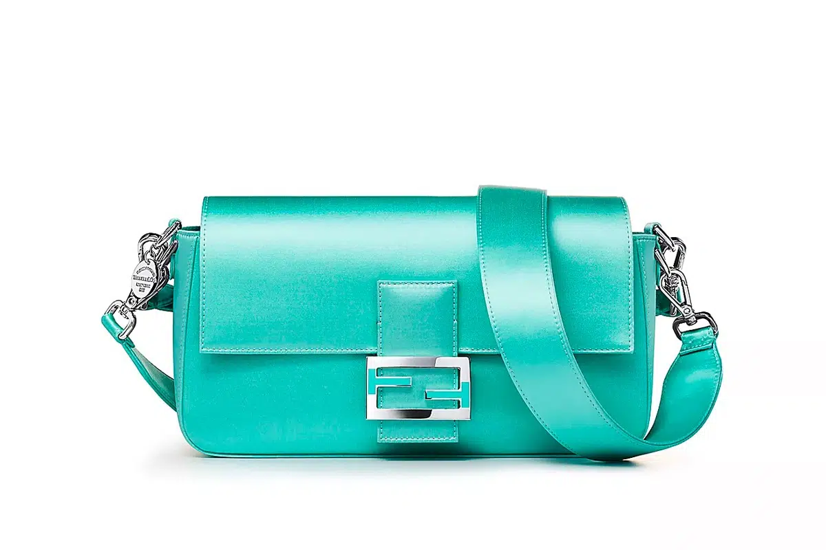 Celebrando el 25º aniversario de su icónico Baguette Bag, Fendi se unió al equipo de Tiffany & Co. para reinterpretarlo a través del emblemático color azul de la casa joyera.