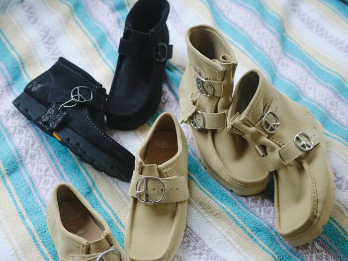 En total, se lanzan seis versiones de las Wallabee, disponibles en tres alturas: low, mid y boot, y dos combinaciones de colores, crema y negro. La parte superior conserva su diseño en ante, pero introduce detalles distintivos que marcan la colaboración, como el logotipo en relieve de la mariposa de NEEDLES sobre el talón y una correa ajustable con una hebilla que lleva el símbolo de paz distorsionado. Sin embargo, lo más destacado se encuentra en la suela, que se aleja de la tradicional goma lisa de Clarks y opta por un diseño más robusto.