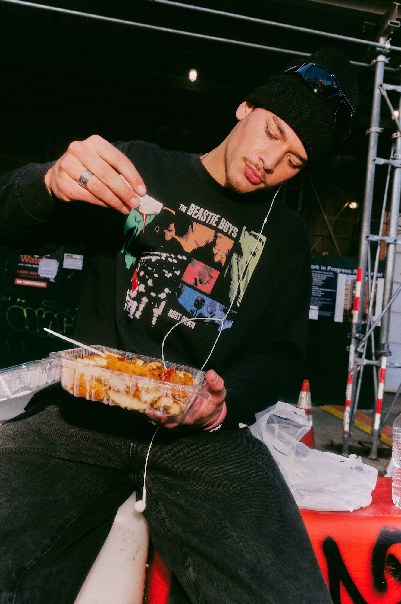 La campaña, como no podía ser de otra manera, vuelve a Nueva York, concretamente al Lower East Side, muy cerca de Beastie Boys Square. Inspirada en la crudeza visual de Paul’s Boutique, apuesta por una narrativa lo-fi con cámaras que parecen de seguridad, iluminación fluorescente, espacios comprimidos y una textura visual deliberadamente imperfecta.