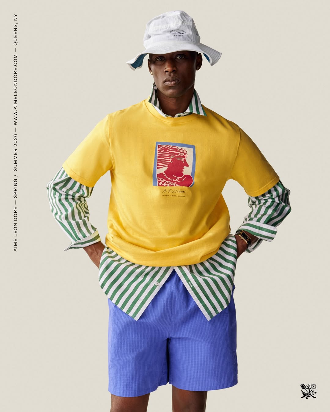Aimé Leon Dore presenta su colección SS26 con esa mezcla infalible de nostalgia, deporte y sofisticación que define a la marca. La firma neoyorquina vuelve a construir un relato donde el preppy americano, la sastrería retro y la cultura urbana conviven con naturalidad. Además, esta temporada llega con una energía cromática más marcada y colaboraciones que amplían su universo.