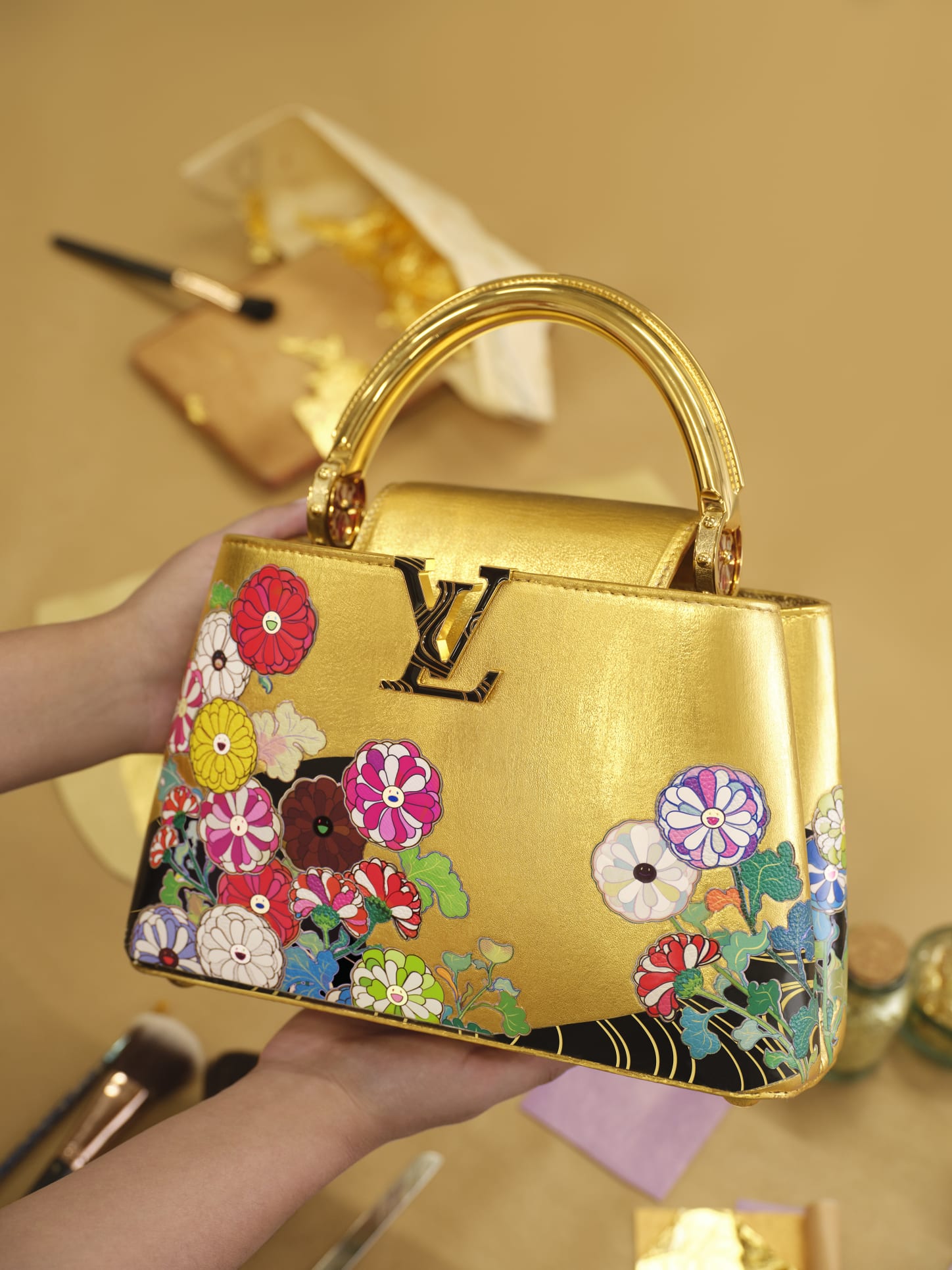 Los protagonistas de esta cápsula -el Capucines BB Golden Garden, el Capusplit BB, el Capucines Mini Autograph y el Panda Clutch– reafirman la visión lúdica y exquisita de Murakami.
