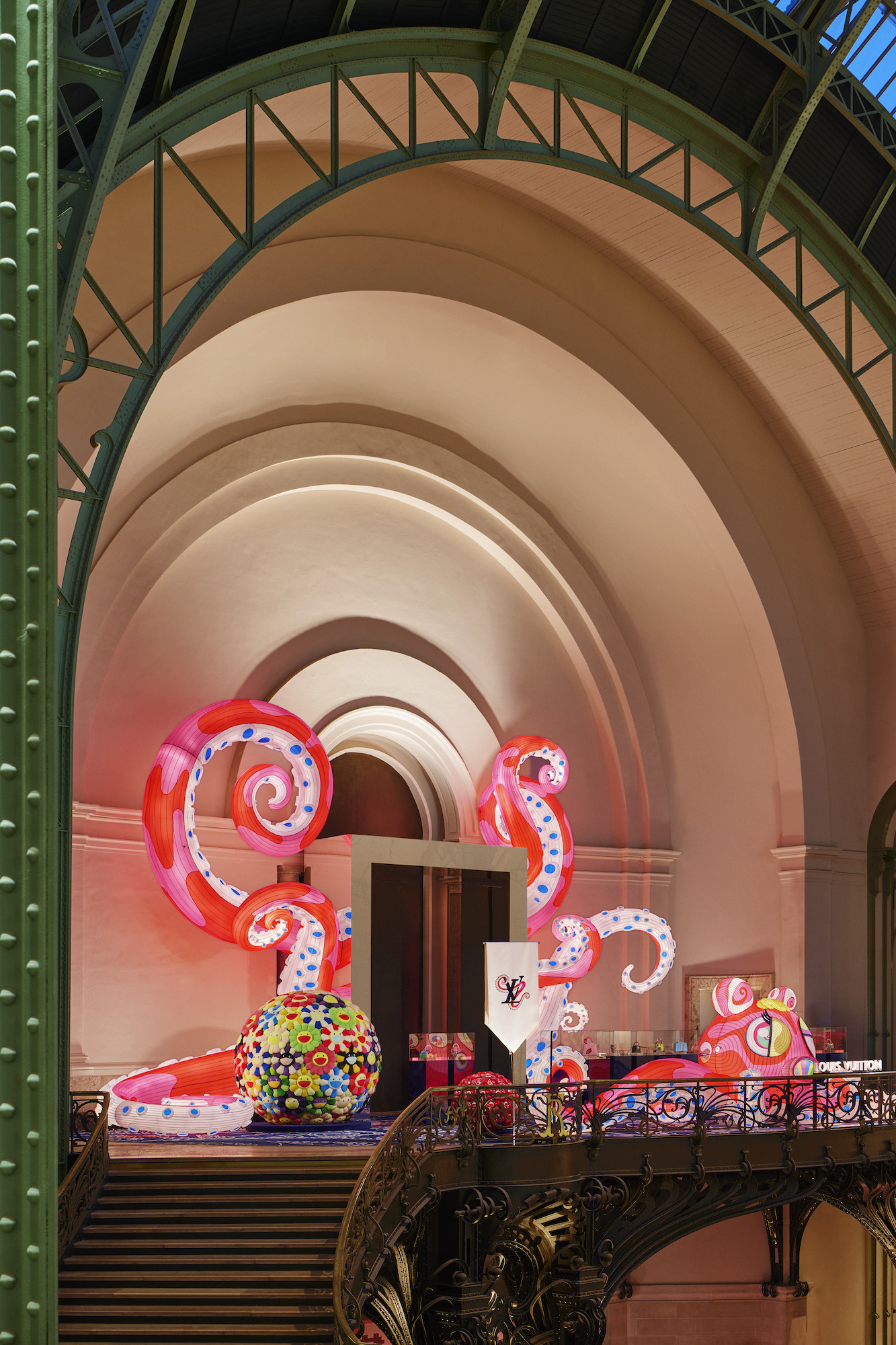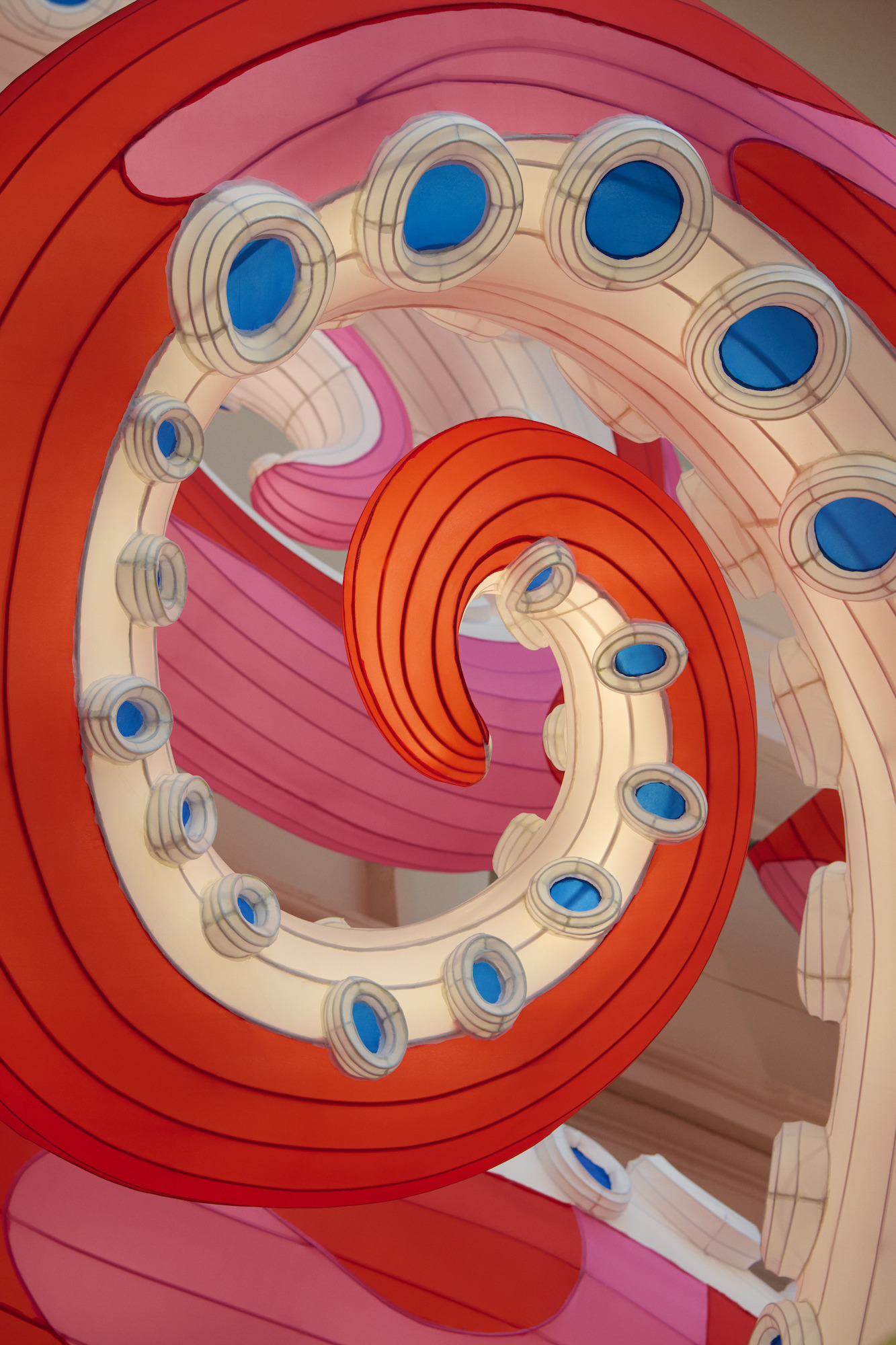 En el Balcon d’Honneur del Grand Palais, el artista despliega una instalación monumental: un pulpo de nueve metros de altura, cuyas luces, texturas y tentáculos transforman el espacio en un escenario inmersivo. Inspirado en los faroles chinos, el cefalópodo se convierte en una metáfora de su propio universo hipnótico, divertido y, a veces, hasta inquietante.