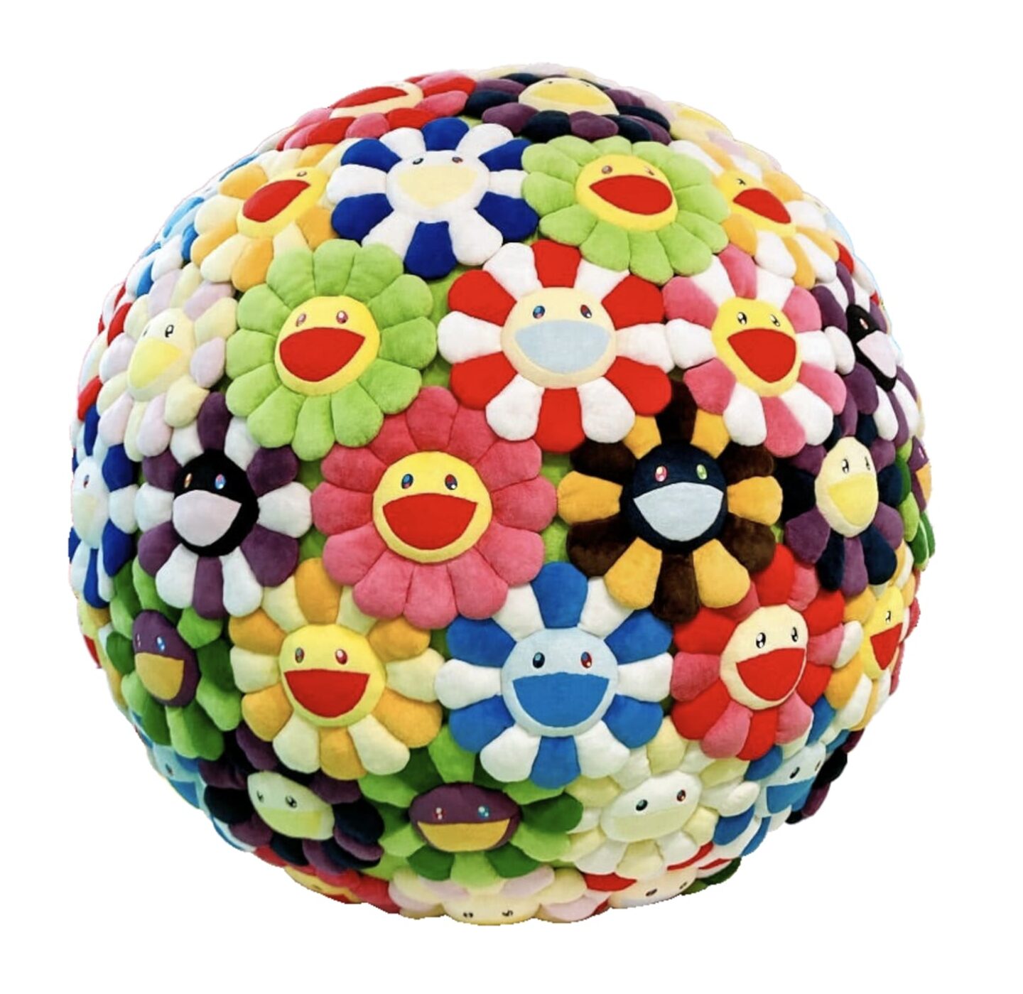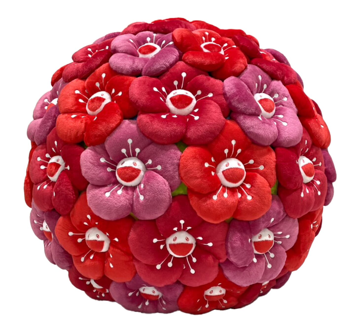 El recorrido se articula en torno a tres Plush Balls, esculturas de felpa tridimensionales que el artista viene explorando desde los noventa. Entre ellas, la nueva Cherry Blossom Plush Ball (2025) rinde homenaje a la flor de sakura, emblema de belleza efímera y renacimiento.
