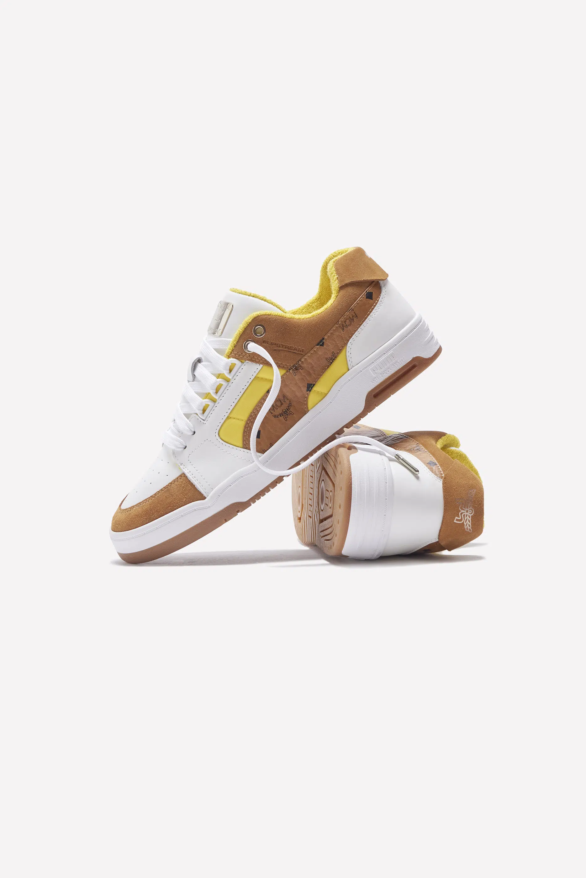 La colección estará dividida en tres drops. El primero de ellos llegará el próximo 8 de septiembre con la silueta Show Love. Se trata de una edición MCM única del PUMA Slipstream Lo, un clásico de la cancha que ha sido reinvéntalo y adornado con reflejos de cognac Visetos Monogram, el sello de larga duración de Haus. Durante el mes de octubre saldrá a la venta Show Up, diseñado con detalles en blanco y negro y que incluye el llamativo Cubic Monogram de MCM. Por último, el tercer lanzamiento se celebrará durante la primera mitad de 2023 y estará protagonizado por una versión luminosa del modelo TRC Blaze Court de PUMA.
