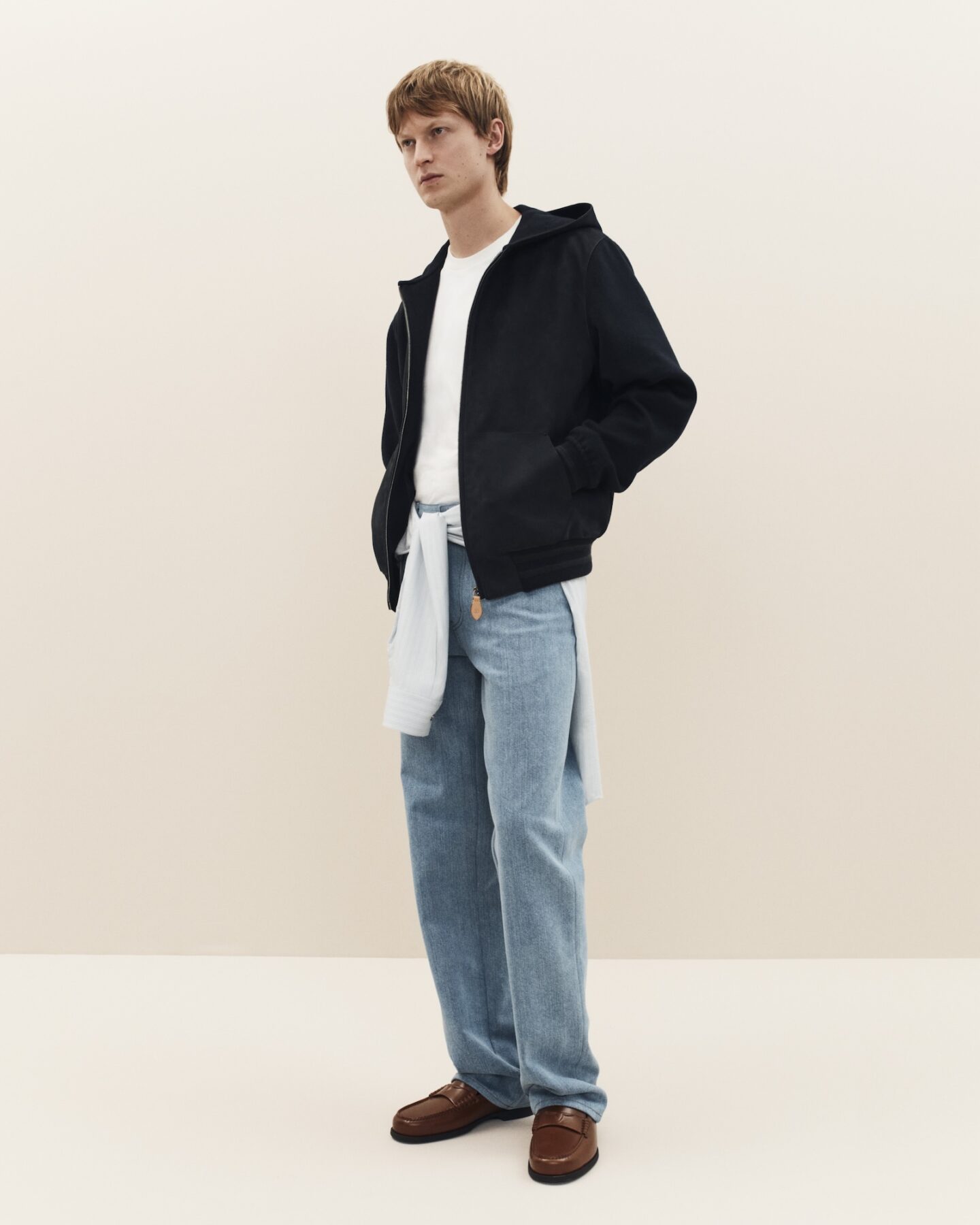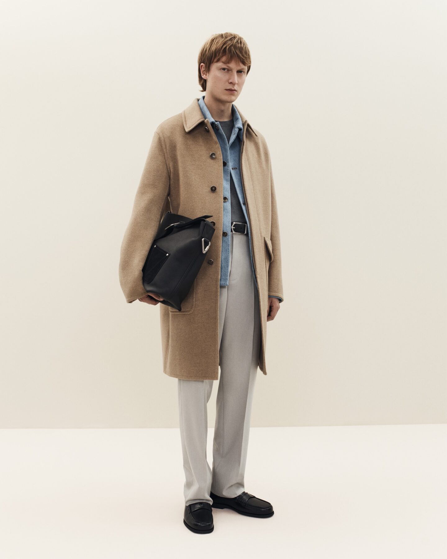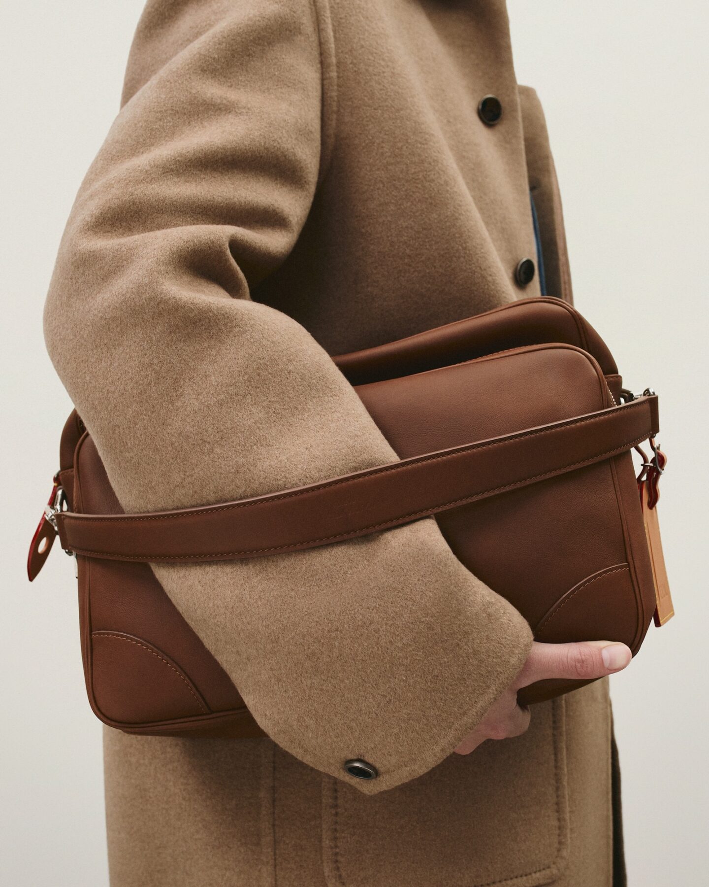 Pensada para acompañar el viaje, la colección fusiona herencia y pragmatismo. Las prendas y accesorios están concebidos para moverse con naturalidad entre lo cotidiano y lo nocturno, del campo a la ciudad, del trabajo al ocio. La silueta es moderna y casual, pero con un aire de formalidad implícita. Expresiones discretas, meticulosamente construidas para el entretiempo, se despliegan en una paleta sobria de beiges, azules, marrones y negros. Cada pieza incorpora una etiqueta inspirada en el cuero, grabada con una inscripción que sintetiza el espíritu de permanencia de la Trunk Edition.