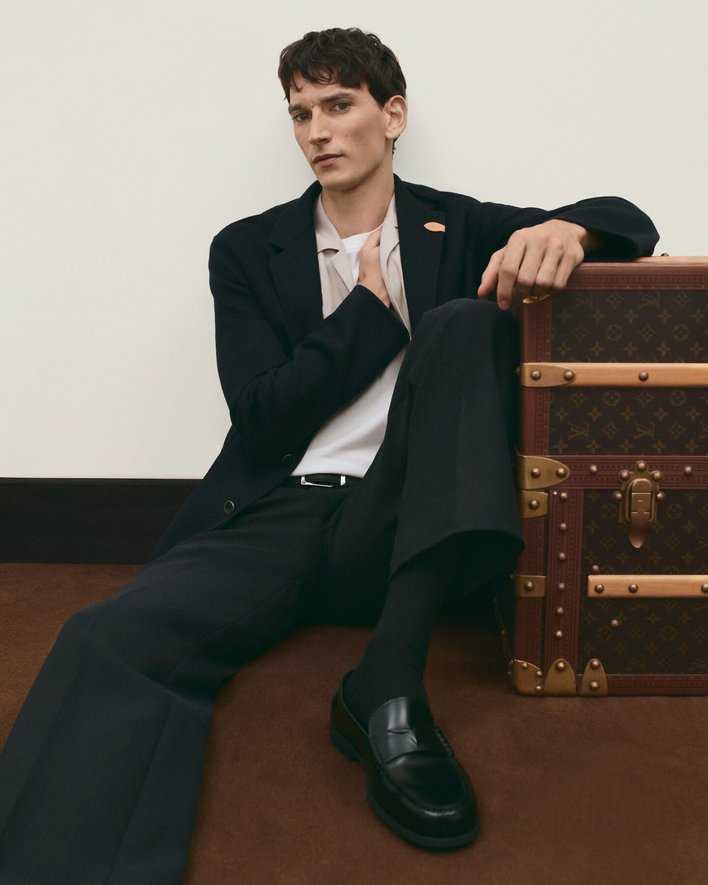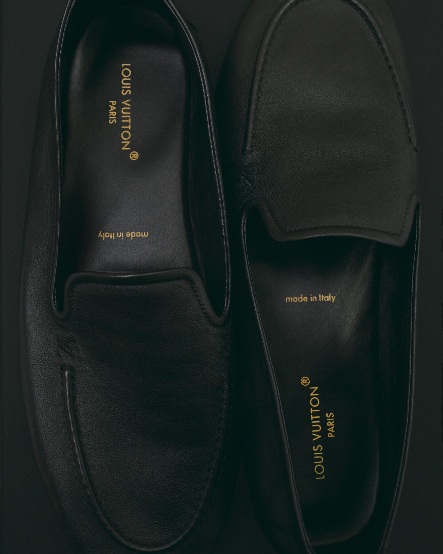 En materia de calzado, el LV Trunk Edition se completa con tres modelos clave: el LV Croisette, un mocasín en piel de becerro encerada negra o coñac, una suela ligera de goma y una hebilla Monogram de media flor; el LV Horizon, una slipper flexible con construcción sacchetto, disponible en piel Buttersoft negra o castaña y en nubuck beige o castaño; y la LV Soft, la sneaker slip-on de ante ultraflexible con suela de goma, abertura fruncida elástica y plantilla con espuma de memoria. Llega en azul marino y gris.