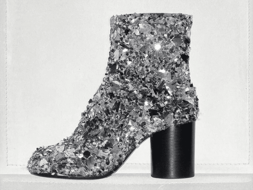 El motivo «Broken Mirror» tiene su origen en la colección Artisanal Otoño/Invierno 2015, creada por John Galliano. En aquella ocasión se aplicó en prendas como vestidos y abrigos. Ahora, Glenn Martens traslada esta técnica al universo tridimensional del Tabi, uniendo el legado histórico de la maison con una visión contemporánea.