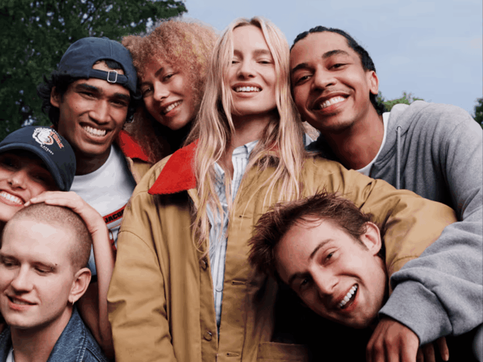Entre las piezas clave destacan chaquetas varsity en lana y piel de vaca, sudaderas y camisetas con escudos ficticios de las universidades de ambas marcas. También incluye la denim de la firma francesa en jeans, minifaldas y chaquetas unisex tipo chore. Camisas Oxford, polos a rayas y camisetas de rugby completan el guiño al estilo prep vintage. Botones con perfiles de los diseñadores recuerdan al Imperio Romano, aportando sofisticación.