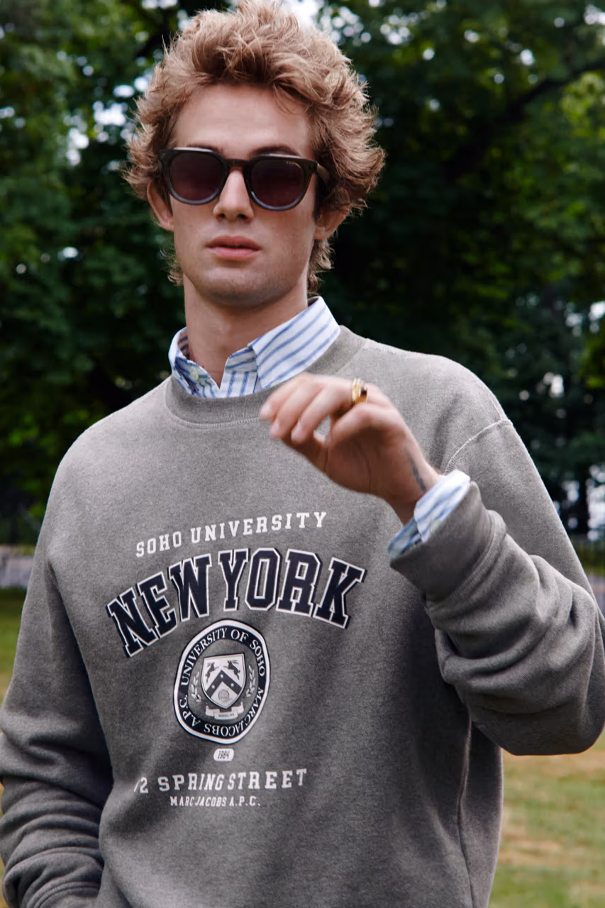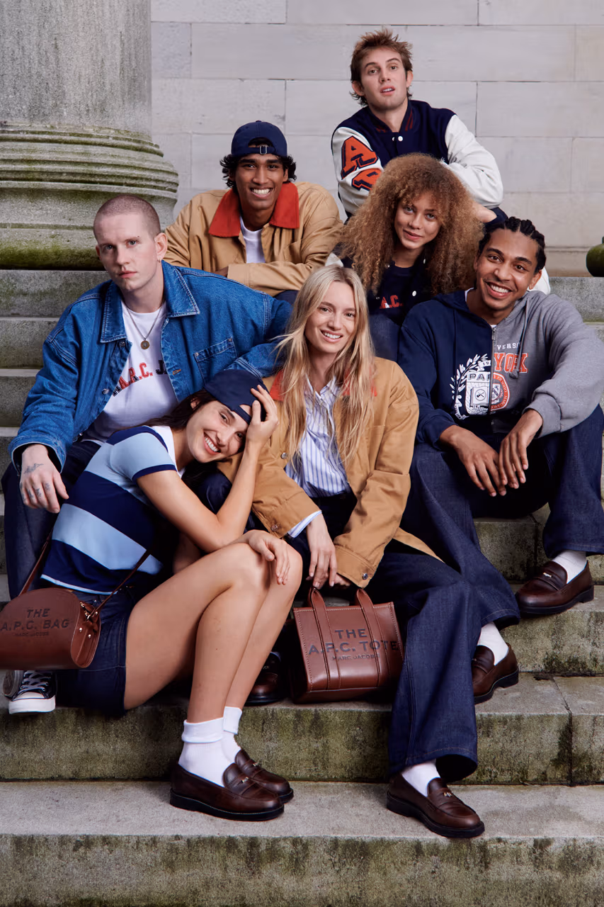 Marc Jacobs y A.P.C. FW25, con 26 piezas, toma prestado el imaginario colegial de los años 80. Cada pieza se reinterpreta con detalles contemporáneos y referencias personales.