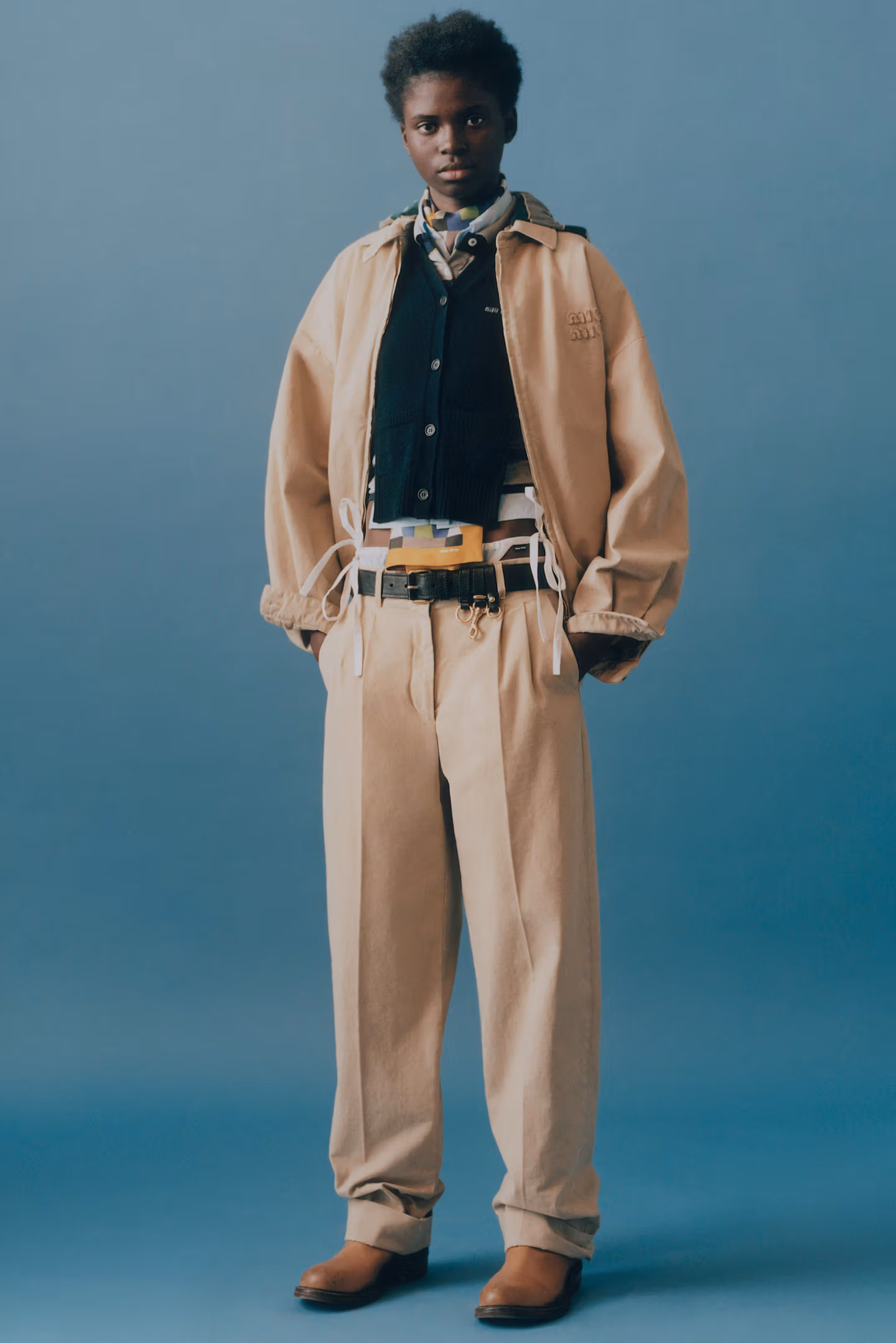 Miu Miu da la bienvenida a 2026 con «Prelude». La propuesta se apoya en el workwear y el outerwear, apostando por prendas pensadas para el uso diario. Funcionalidad y estilo se dan la mano en siluetas inspiradas en la ropa de trabajo, reinterpretadas con el sello inconfundible de la casa.