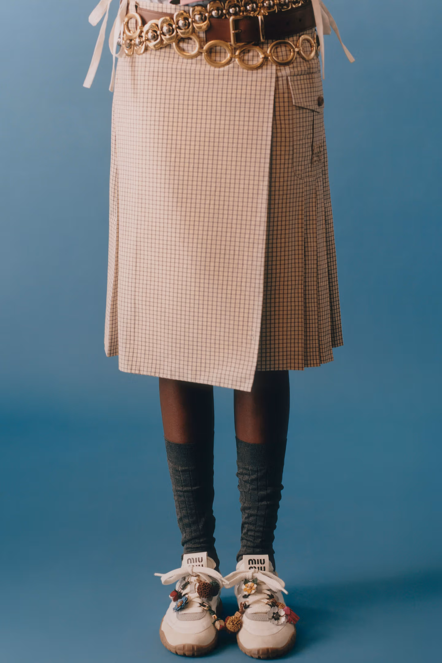 «Prelude» también celebra el regreso del Custom Studio de Miu Miu. Este espacio creativo permite personalizar las sneakers con charms y pequeños adornos, como pompones, borlas o flores. Cada par se convierte así en una pieza única, reforzando el espíritu lúdico y personal de la marca.