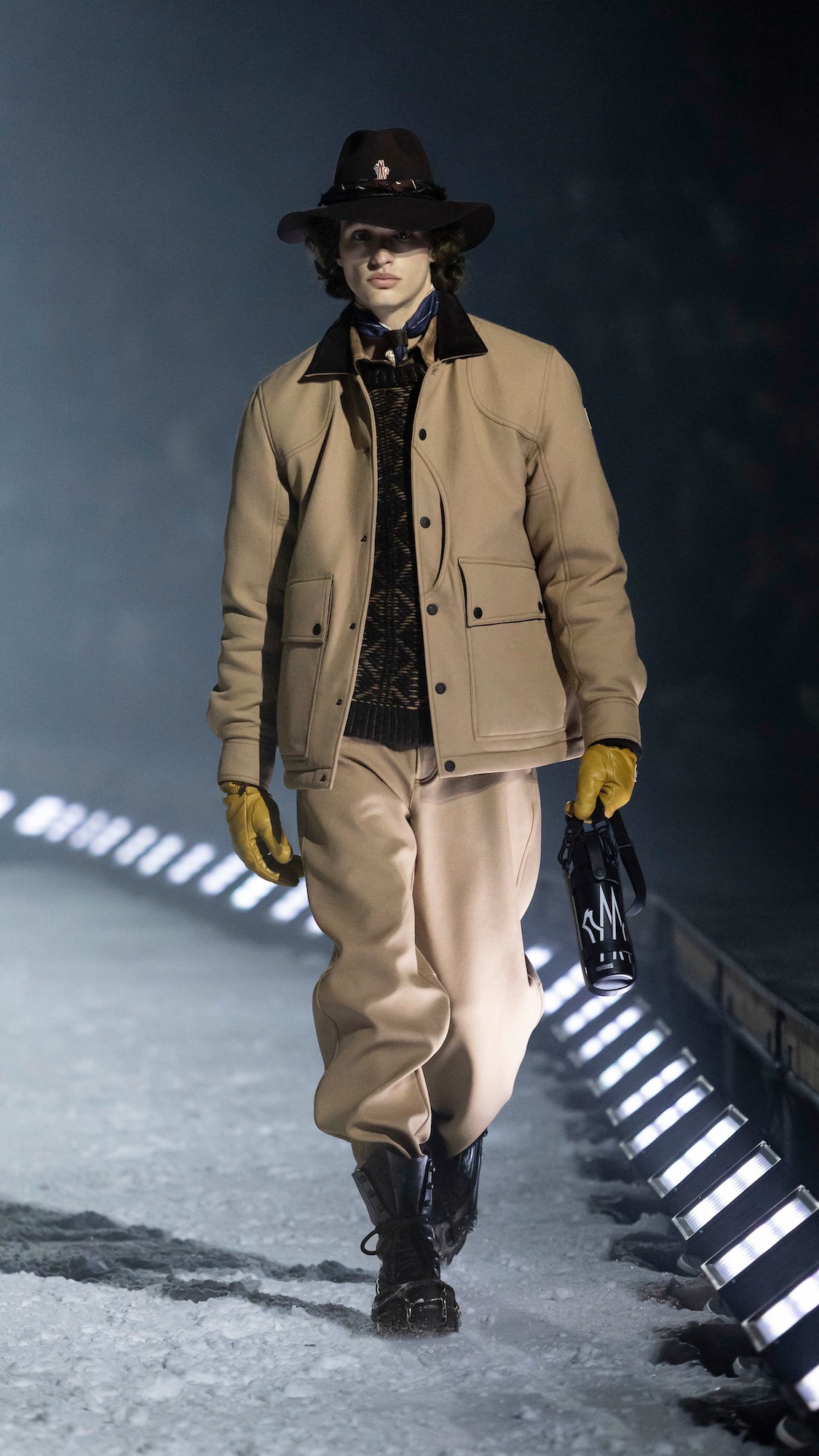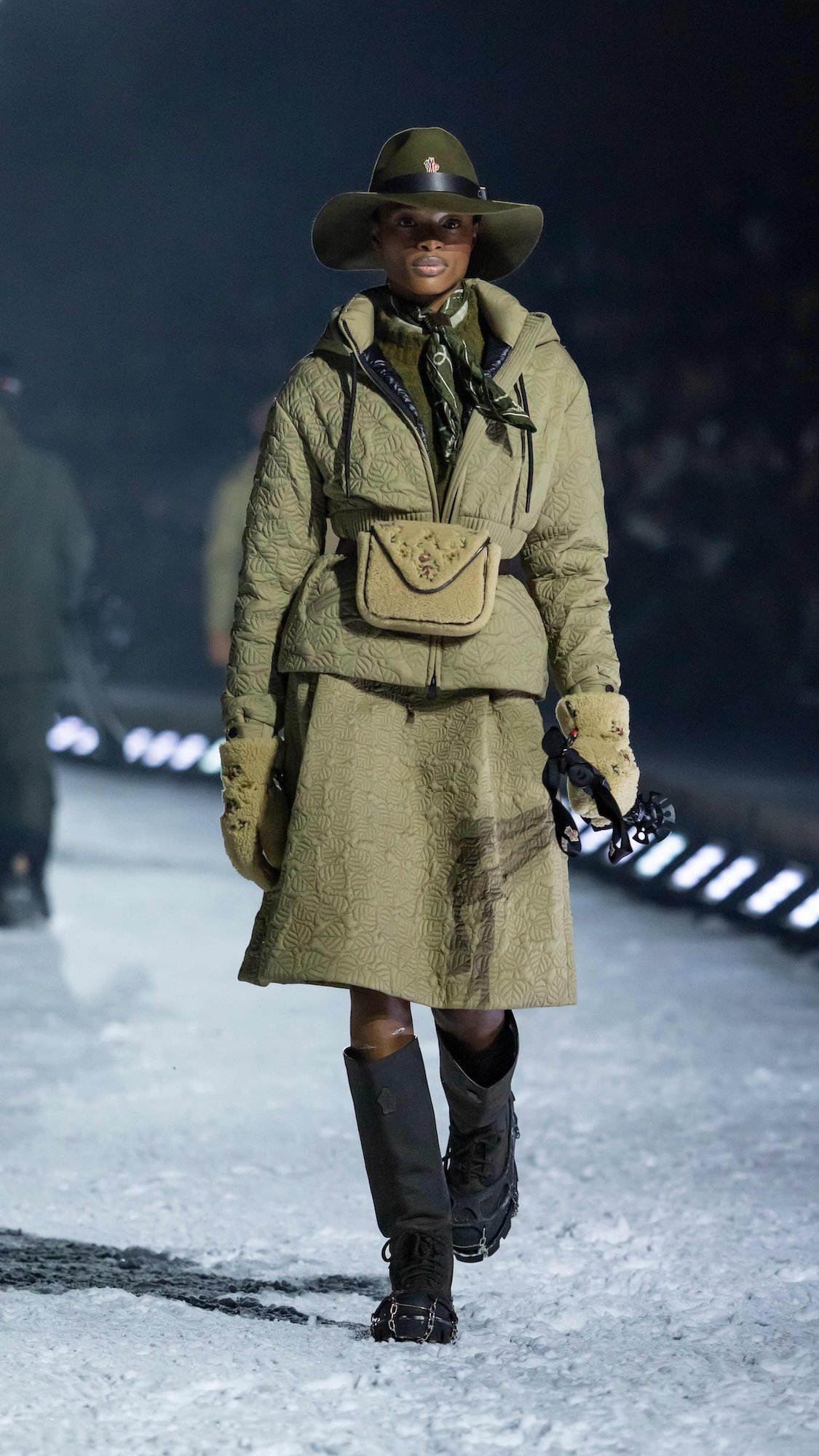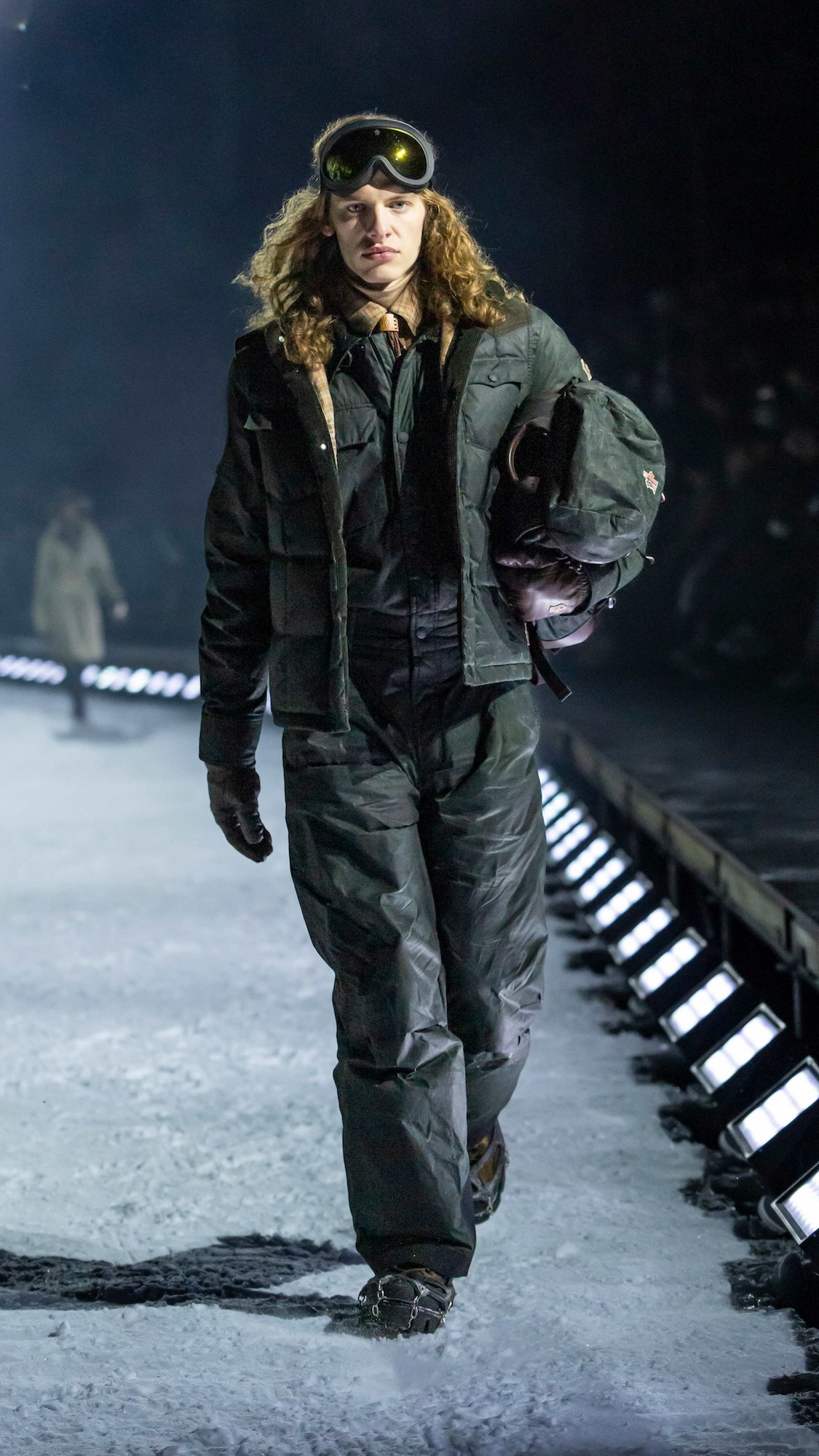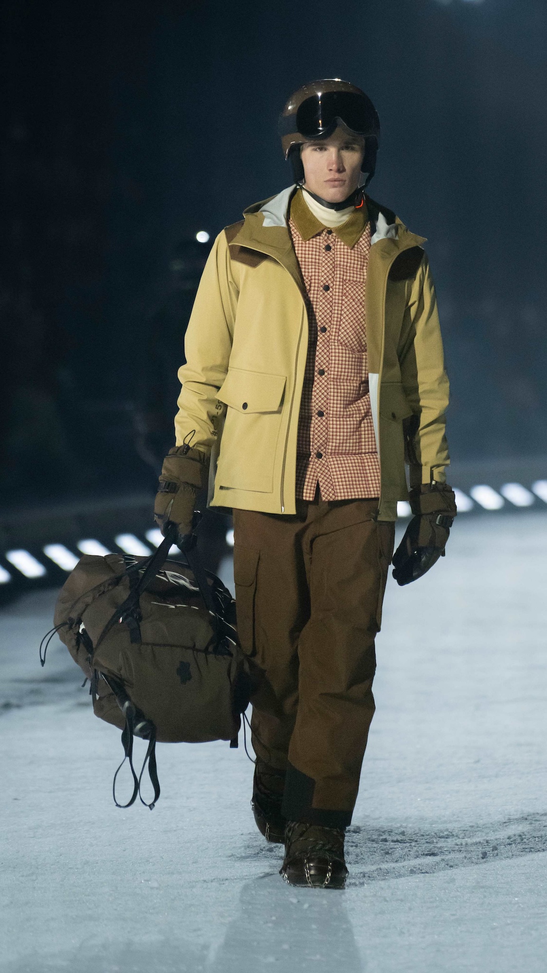 Durante dos días de experiencias inversivas entre esquí, snowboard y travesías con raquetas, la comunidad de Moncler se adelantó en el paisaje de Colorado para vivir, no solo observar, la dimensión más auténtica de Moncler Grenoble, que es la dedicada a la montaña. La culminación llegó con un desfile nocturno sobre una pasarela de nieve, al que los invitados accedieron en motos de nieve atravesando el bosque alpino, con proyecciones de luz danzando entre los árboles. Un momento cinematográfico que simbolizaba el encuentro entre dos universos que comparten un mismo ADN.
