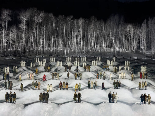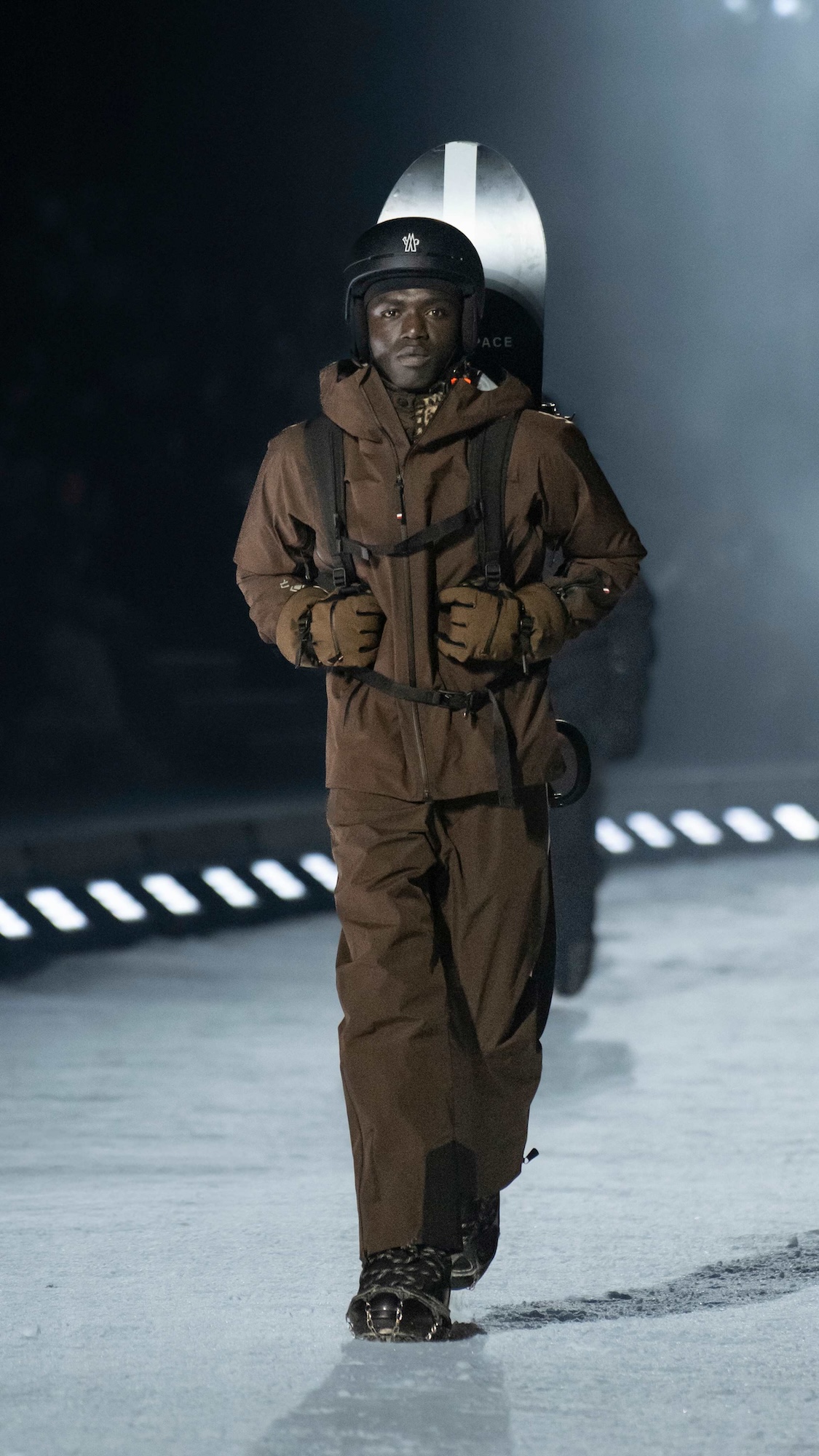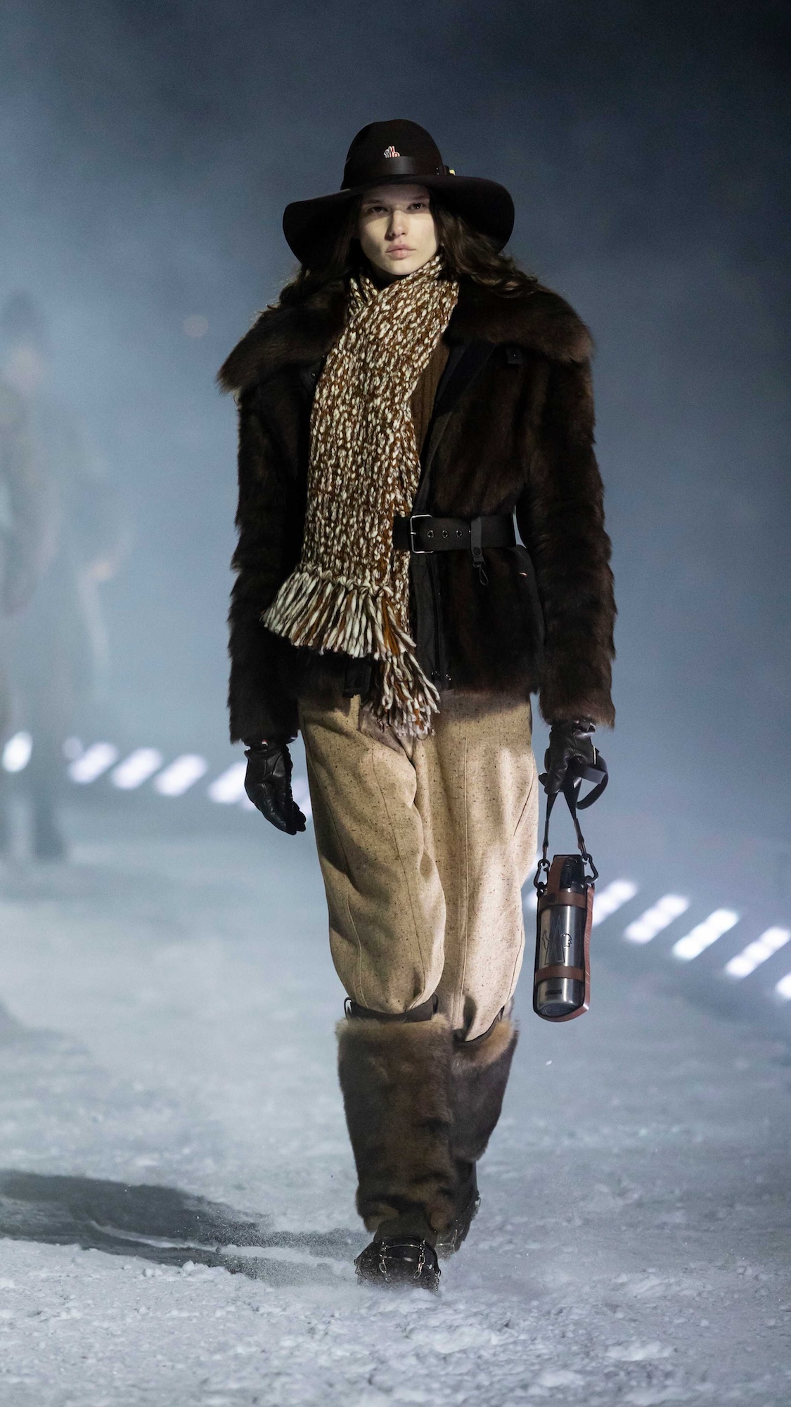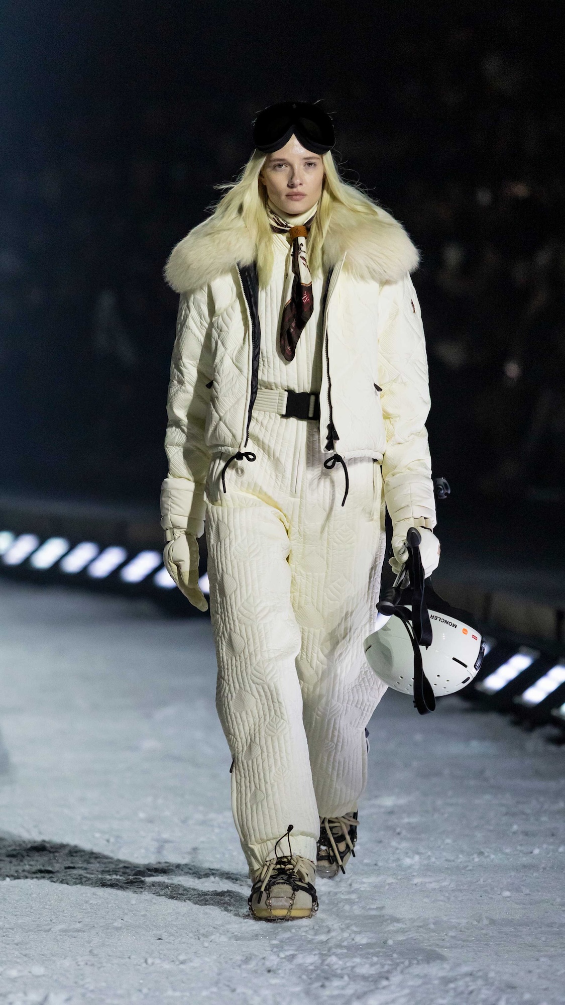 Durante dos días de experiencias inversivas entre esquí, snowboard y travesías con raquetas, la comunidad de Moncler se adelantó en el paisaje de Colorado para vivir, no solo observar, la dimensión más auténtica de Moncler Grenoble, que es la dedicada a la montaña. La culminación llegó con un desfile nocturno sobre una pasarela de nieve, al que los invitados accedieron en motos de nieve atravesando el bosque alpino, con proyecciones de luz danzando entre los árboles. Un momento cinematográfico que simbolizaba el encuentro entre dos universos que comparten un mismo ADN.