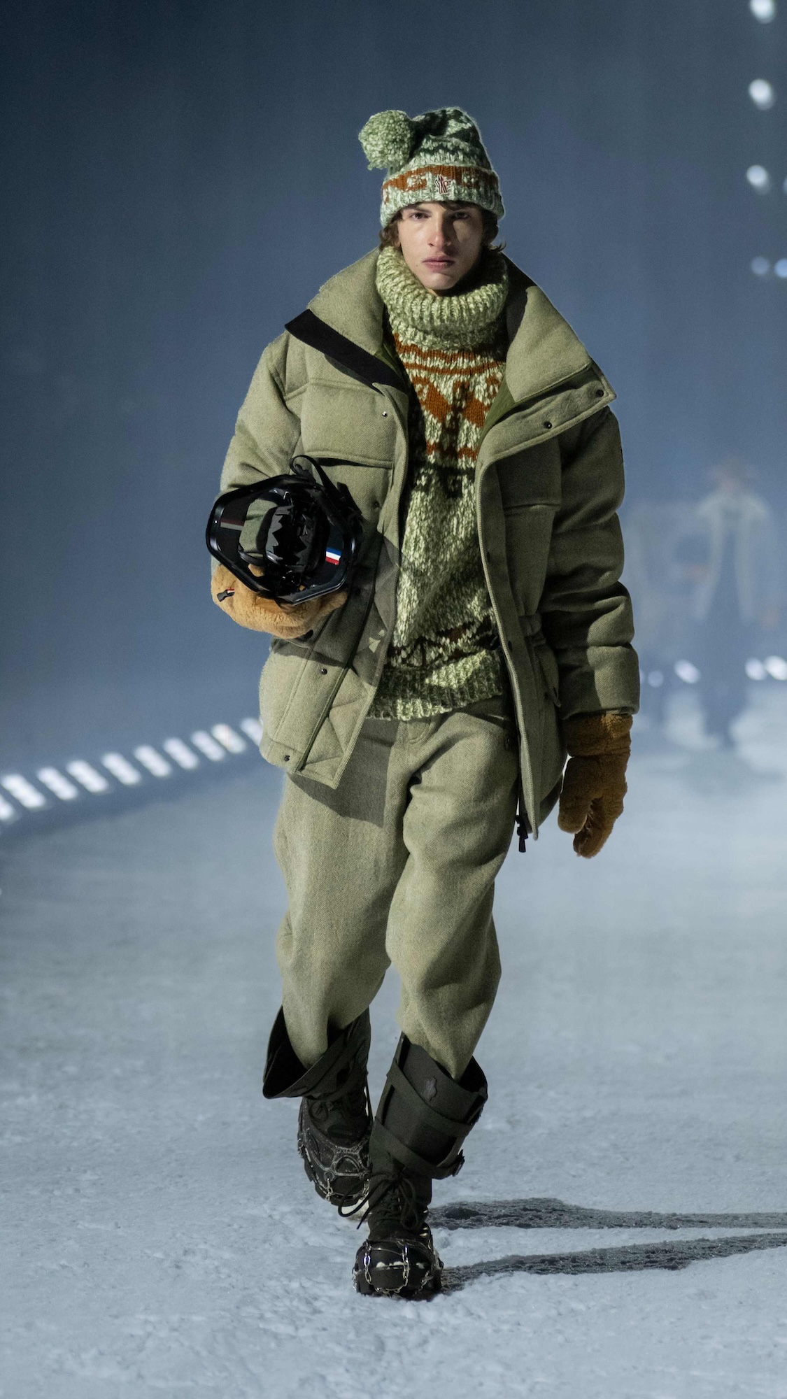 Ese cruce de caminos es precisamente el que define la narrativa de Moncler Grenoble FW26: un diálogo entre pasado y futuro, entre herencia europea y cultura montañesa americana, entre tradición y una tecnicidad radicalmente contemporánea.