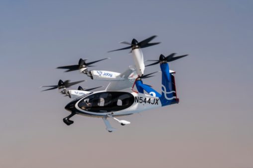Detrás de todo esto está un avión eléctrico de Joby Aviation. Funciona con seis hélices que le permiten despegar y aterrizar en vertical, como un helicóptero, y luego inclinarse para volar hacia adelante como un avión. Puede alcanzar hasta 320 km/h y recorrer unos 160 kilómetros con una sola carga. Dentro caben cuatro pasajeros y un piloto profesional, y tiene ventanas grandes para disfrutar de las vistas de la ciudad desde el aire.