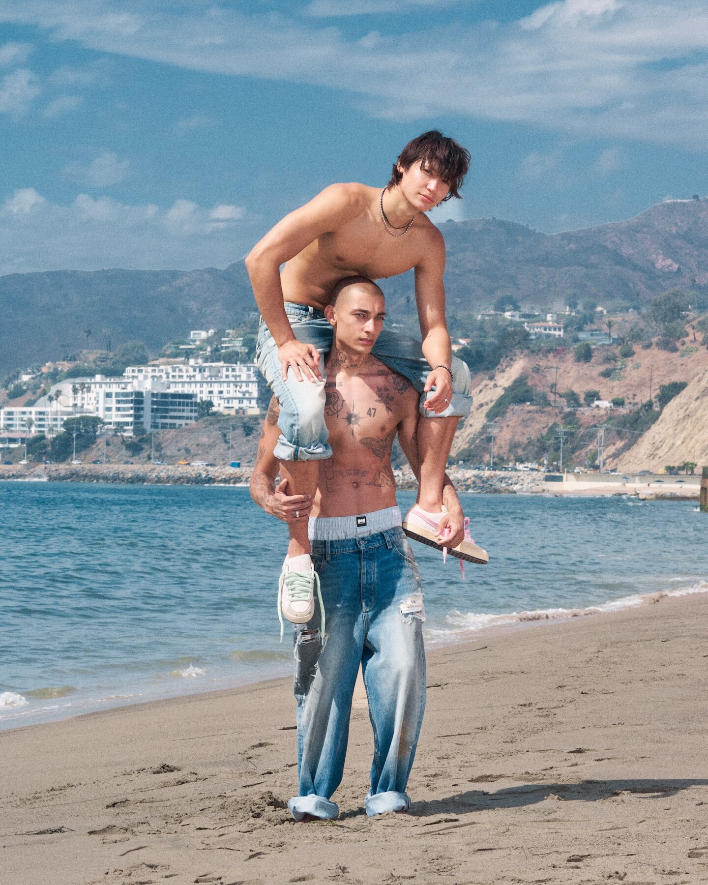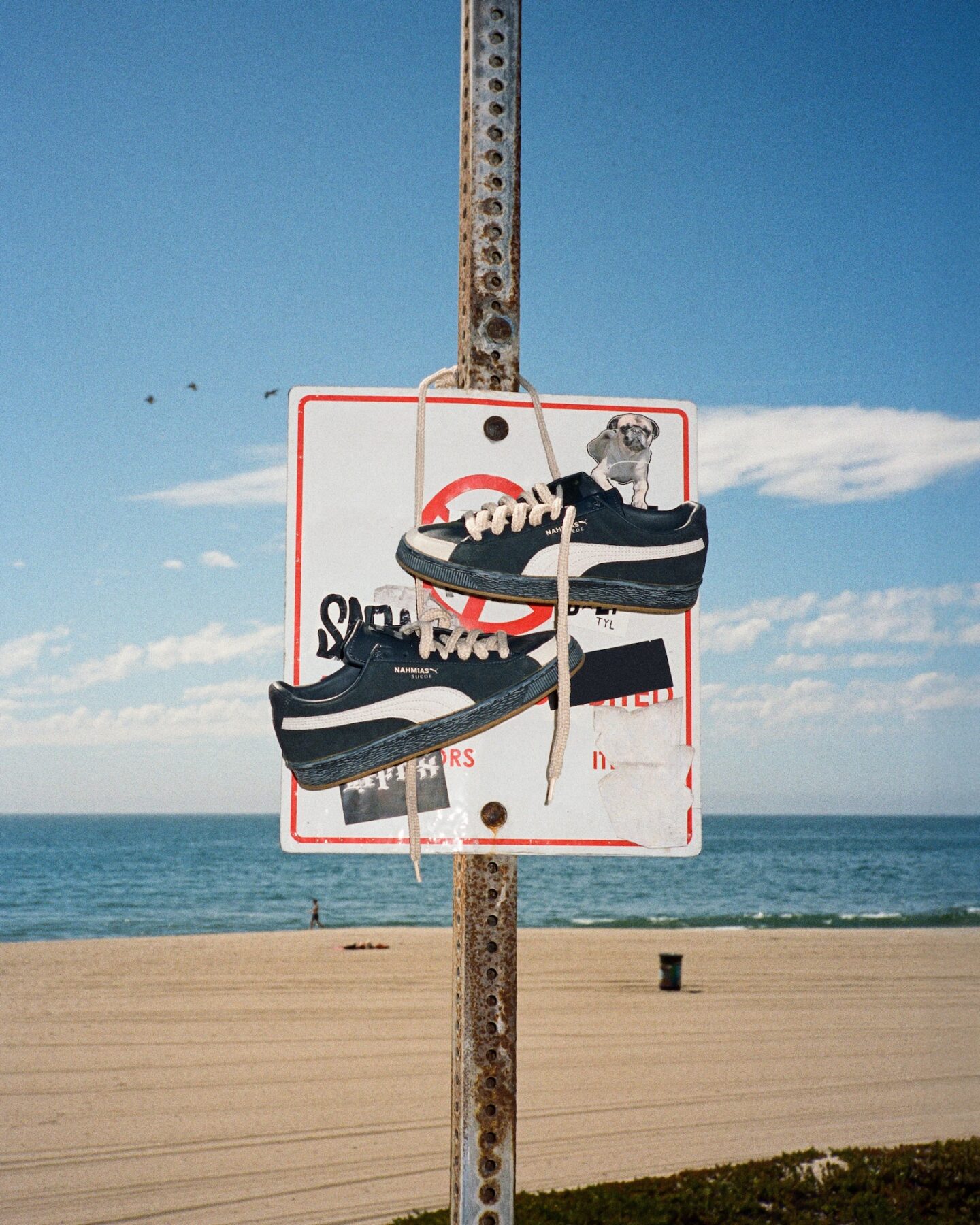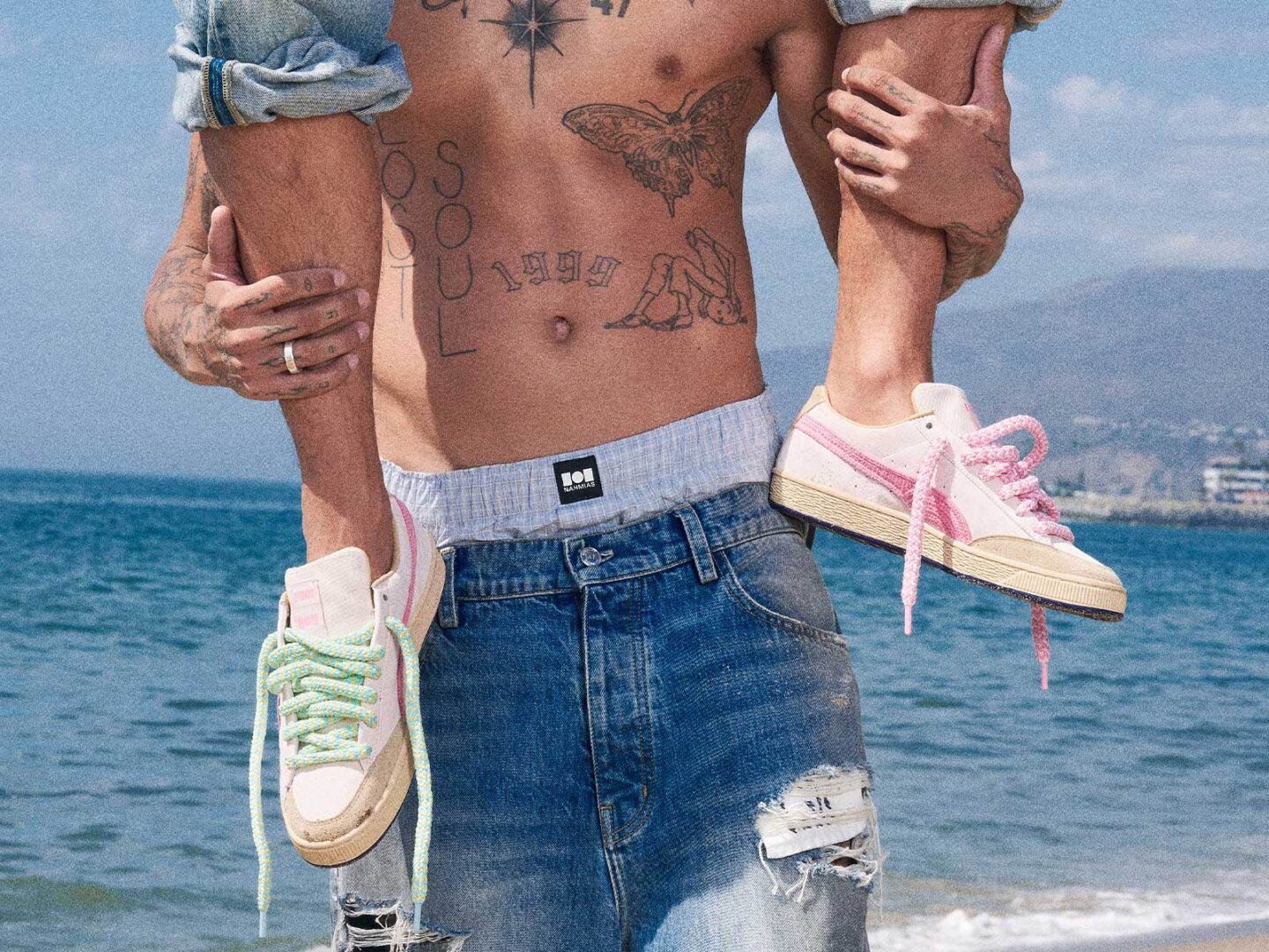 En esta ocasión, son los detalles los que marcan la verdadera diferencia, en forma de acentos de crochet y aplicaciones de cuentas de colores introducen un juego divertido que oscila ente lo lúdico y lo veraniego. Lo cordones y las inserciones tejidas suavizan e conjunto, aportando una dimensión más cálida y sensorial que conecta con la estética de la Costa Oeste estadounidense. En el interior, los gráficos de marca compartida y el mensaje ‘Let’s Be Friends’ sellan el espíritu colaborativo del encuentro, subrayando la voluntad de PUMA y NAHMIAS de construir una comunidad sólida a través del diseño.