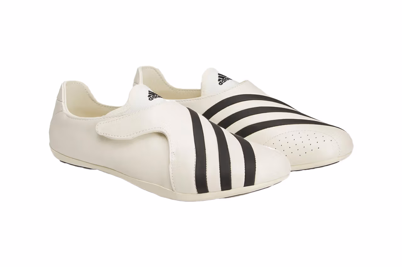 Este nuevo modelo se presenta inicialmente en dos colorways muy limpios, ambos dominados por el blanco roto. Las diferencias llegan a traves de los acentos, uno incorpora detalles en verde y el otro en negro. El diseño destaca por su construccion sin cordones, reforzando esa sensacion de sencillez y fluidez, mientras que las iconicas tres bandas de adidas se extienden de forma llamativa desde la puntera lateral hasta el mediopie. Los logos clasicos de la marca de zapatillas aparecen tanto en la lengueta como en el talon, y la suela, completamente minimalista, incluye el grabado «VIRGINIA» como guiño directo a la linea.