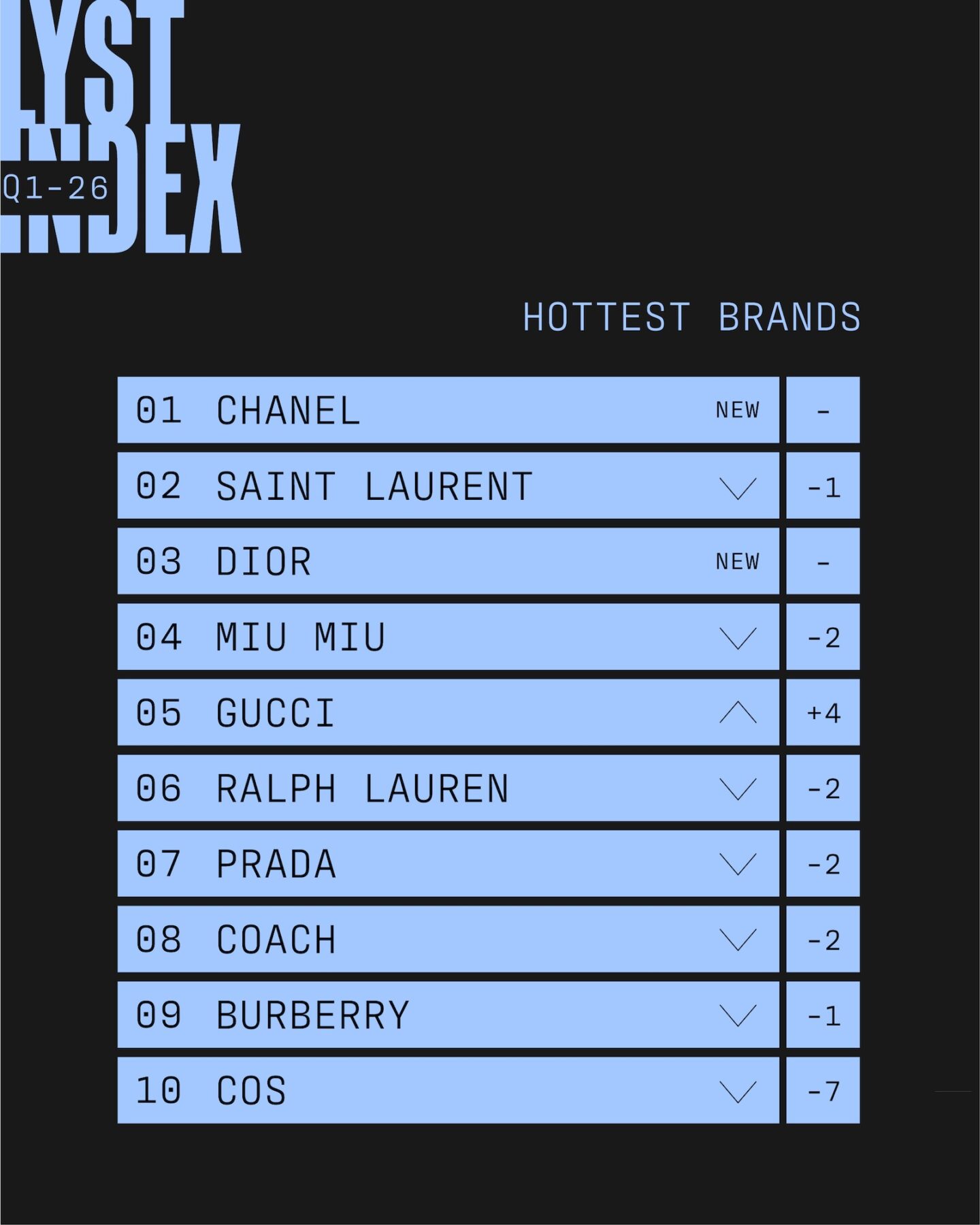 En su primera edición del año (enero-marzo) el índice introduce una reconfiguración total del ranking y una metodología que cambia por completo las reglas del juego. Y dentro de esta nueva era, Chanel debuta directamente en el número uno, impulsada por un Matthieu Blazy imparable con diseños clave como los zapatos de salón y el bolso Maxi Flap.
