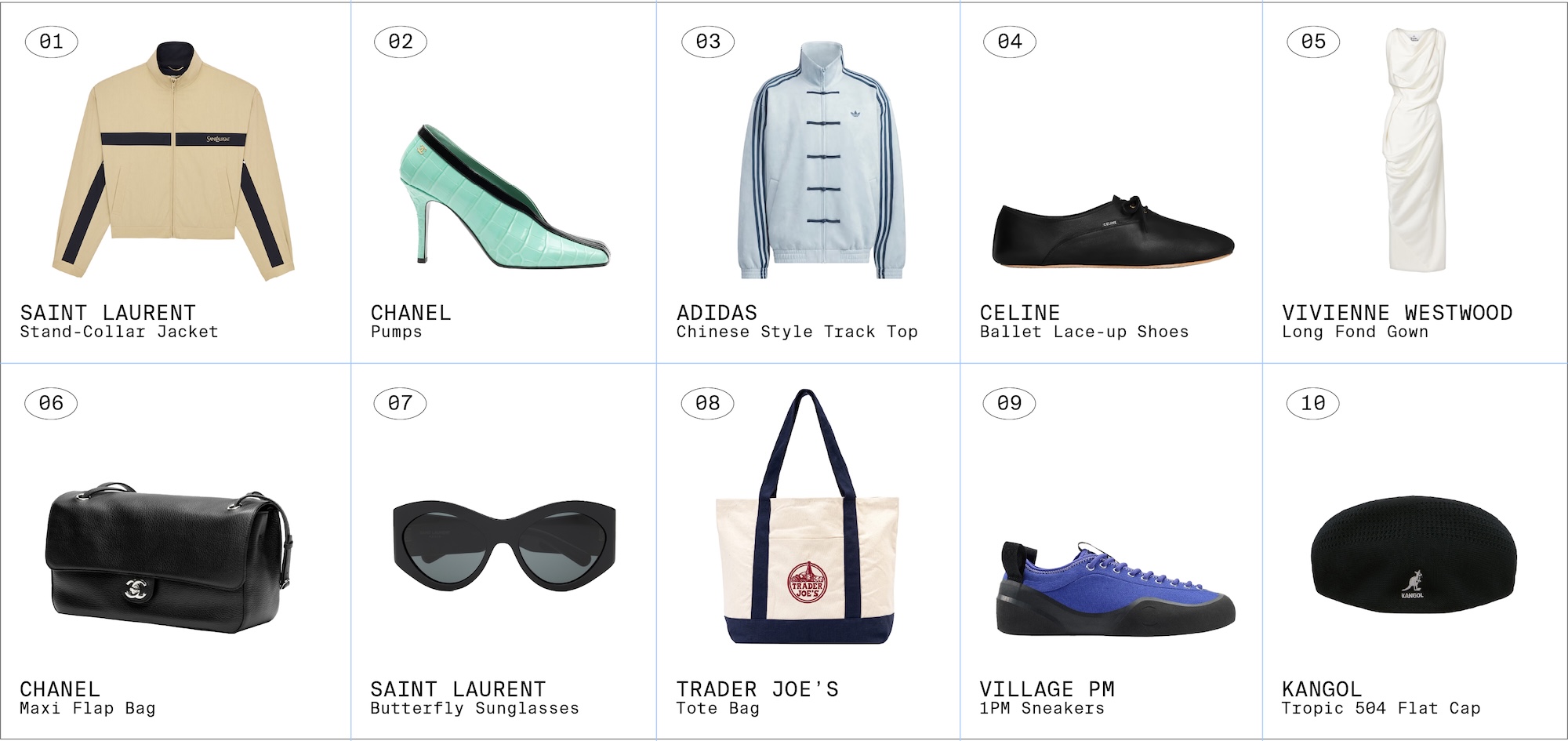 En producto, Saint Laurent domina con autoridad con su chaqueta de cuello alto, el artículo más deseado del trimestre (+5.550%), y sus gafas Butterfly que también escalan posiciones (+217%). Otros hits incluyen la chaqueta Chinese Style Track de adidas (+960% en marzo), las bailarinas lace-up de Celine (+300%) o la gorra Tropic 504 de Kangol, impulsada por ‘Love Story’.