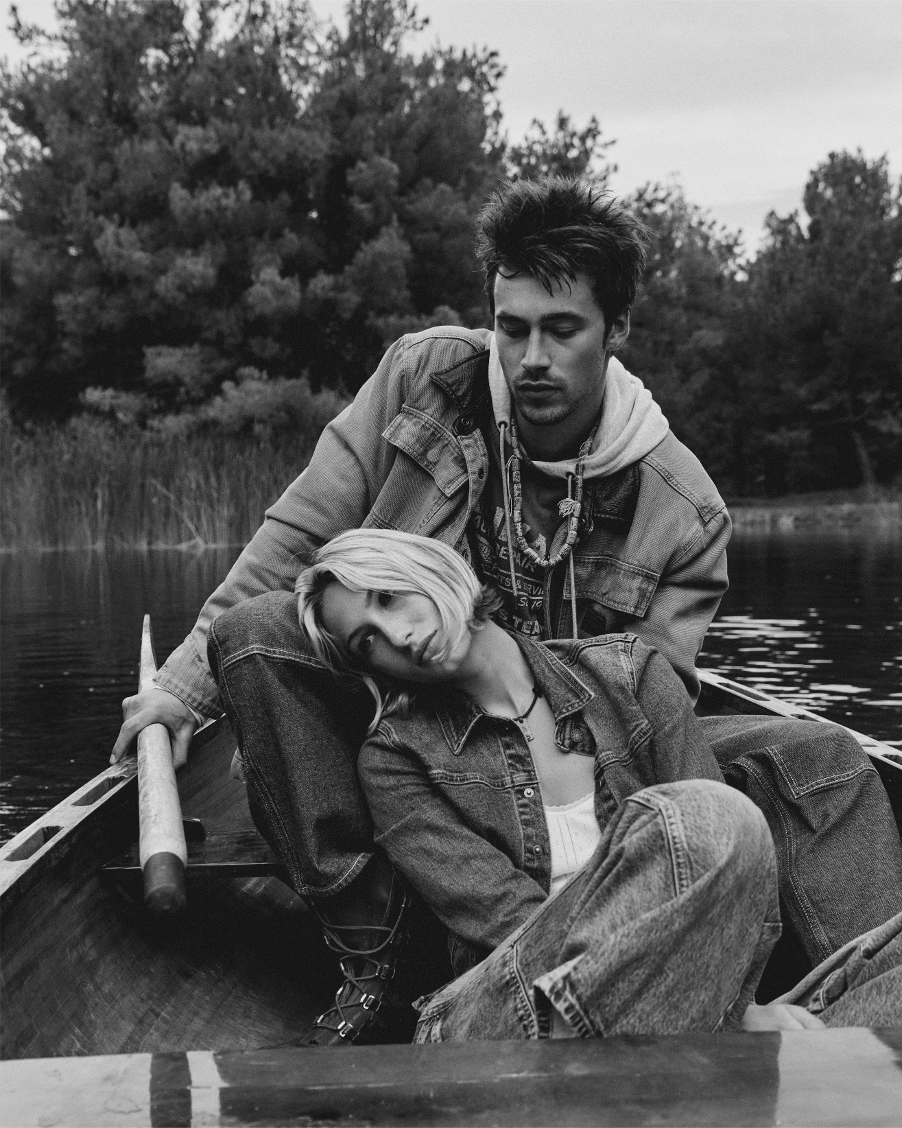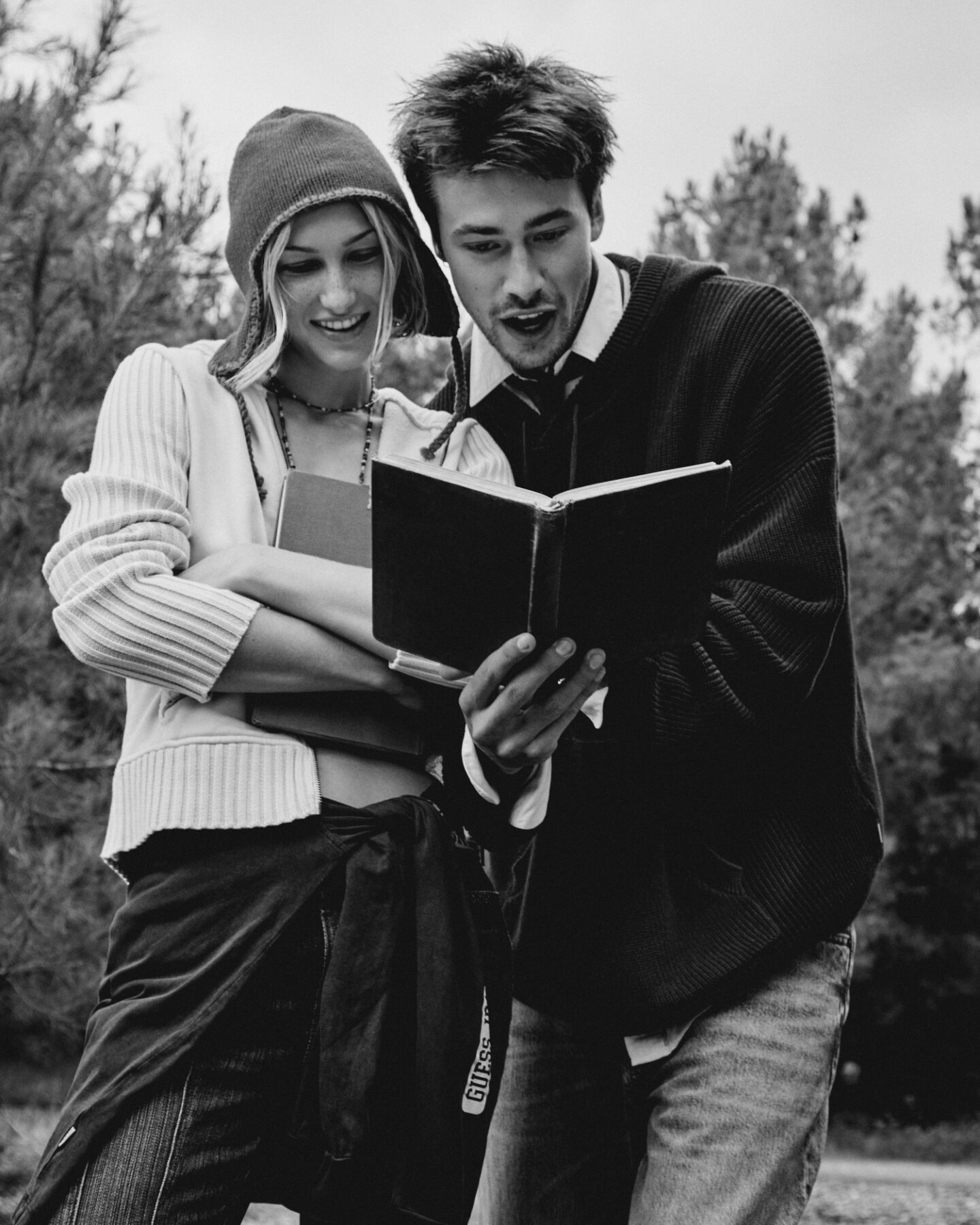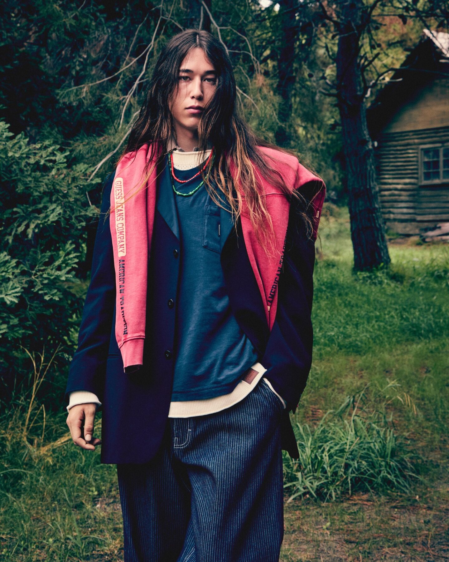 A campanha se passa em uma casa na montanha onde tudo acontece ao mesmo tempo: alguém está cozinhando, outra pessoa está tocando música, outra está rindo sem saber bem por quê. Festas reais, daquelas em que suas roupas acabam ficando com um cheiro de lareira e diversão. Nada está arrumado… e é por isso que funciona. A GUESS Jeans captura aquele caos lindo que transforma qualquer reunião em uma lembrança legal.