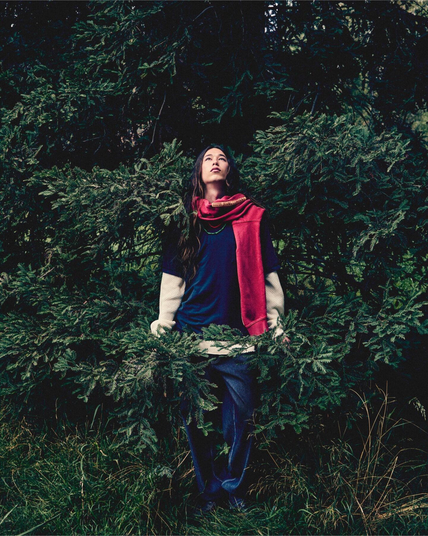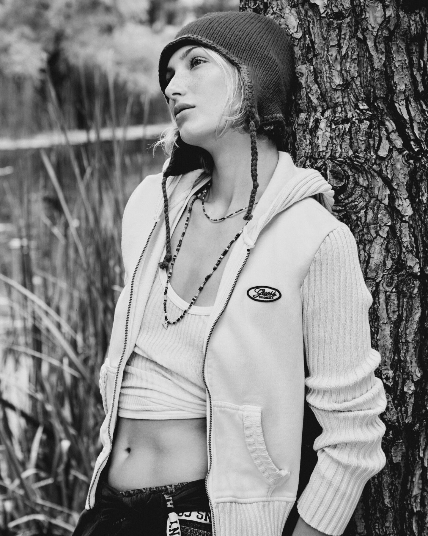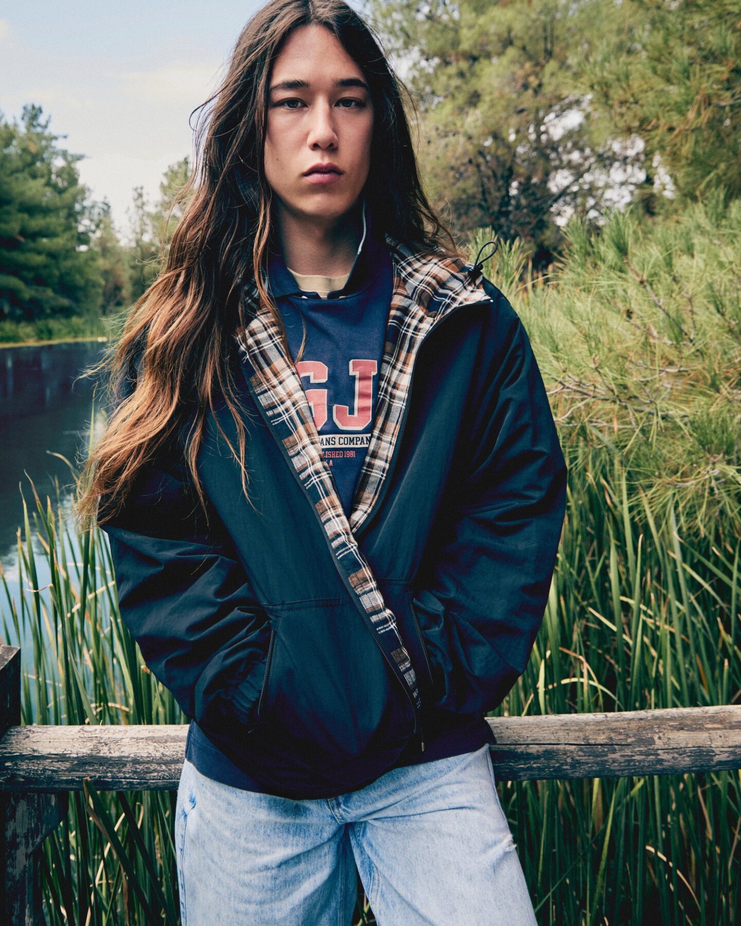 A coleção inspira-se nos anos 90, mas sem o cosplay. Denim solto que pede para ser movido, malhas oversized que parecem abraçar-te, xadrez que grita inverno sem melodrama, tops justos e botas resistentes o suficiente para atravessar qualquer ressaca emocional ou meteorológica. É a estética «vesti-me rapidamente, mas estou incrível». E esse é o verdadeiro feriado.