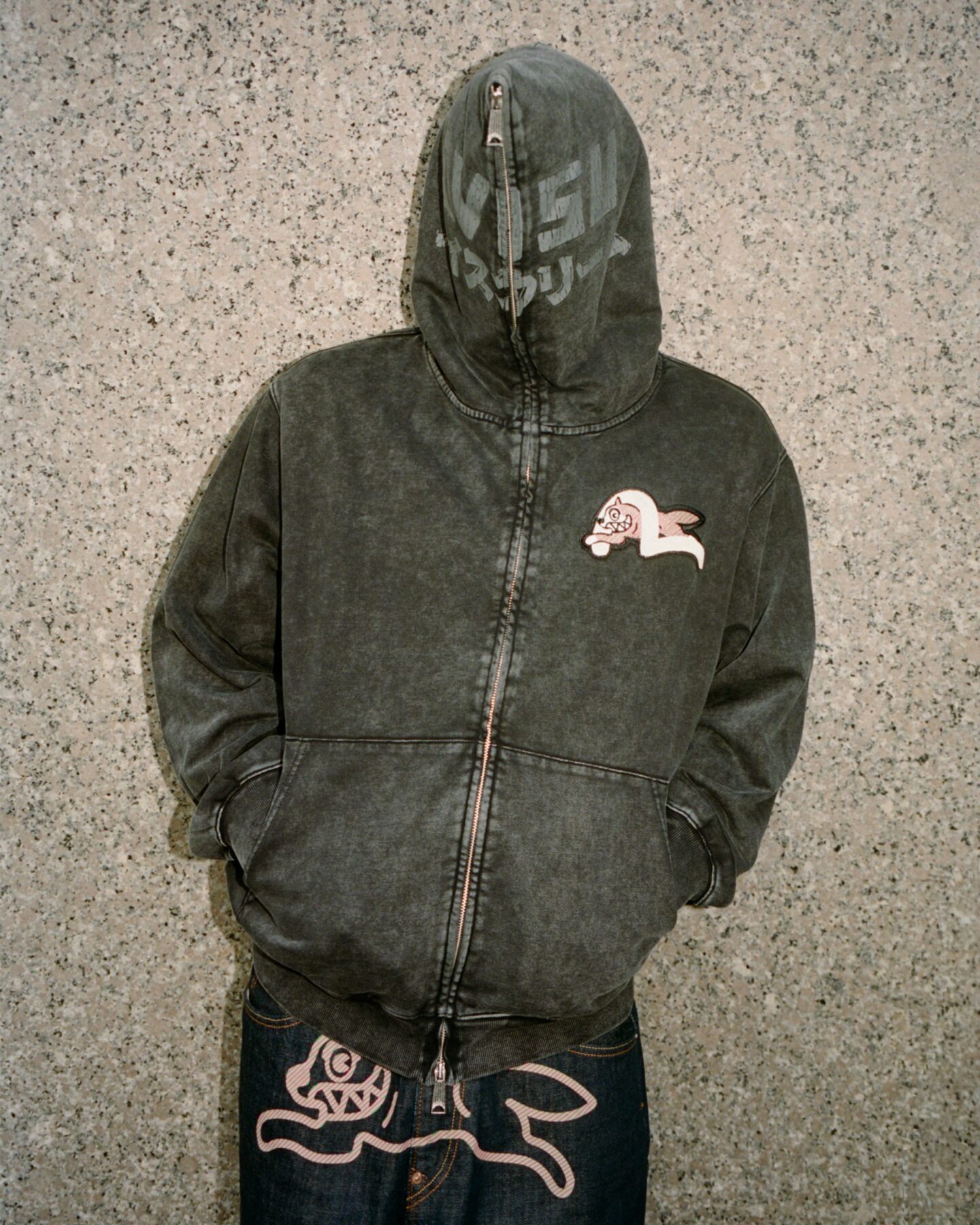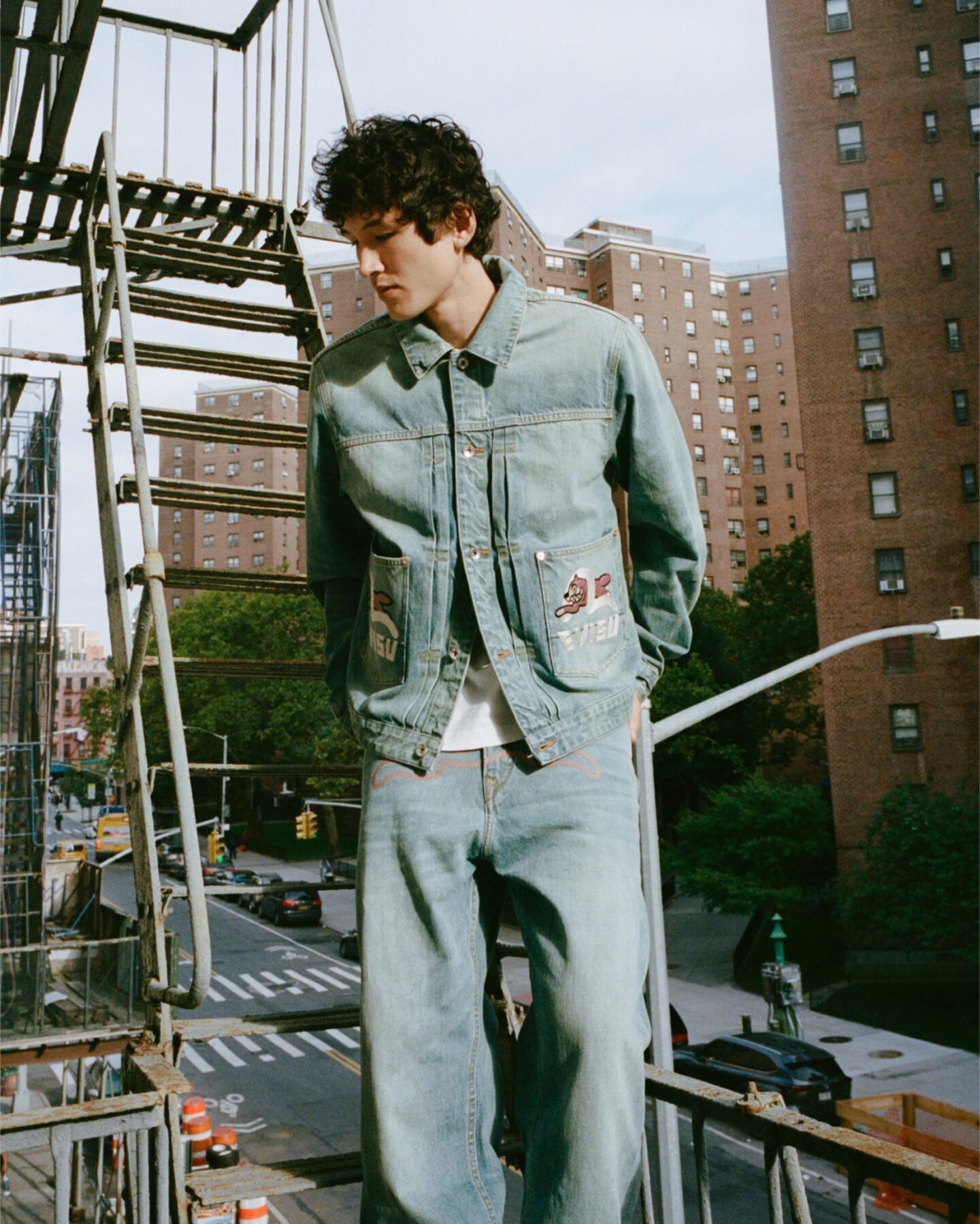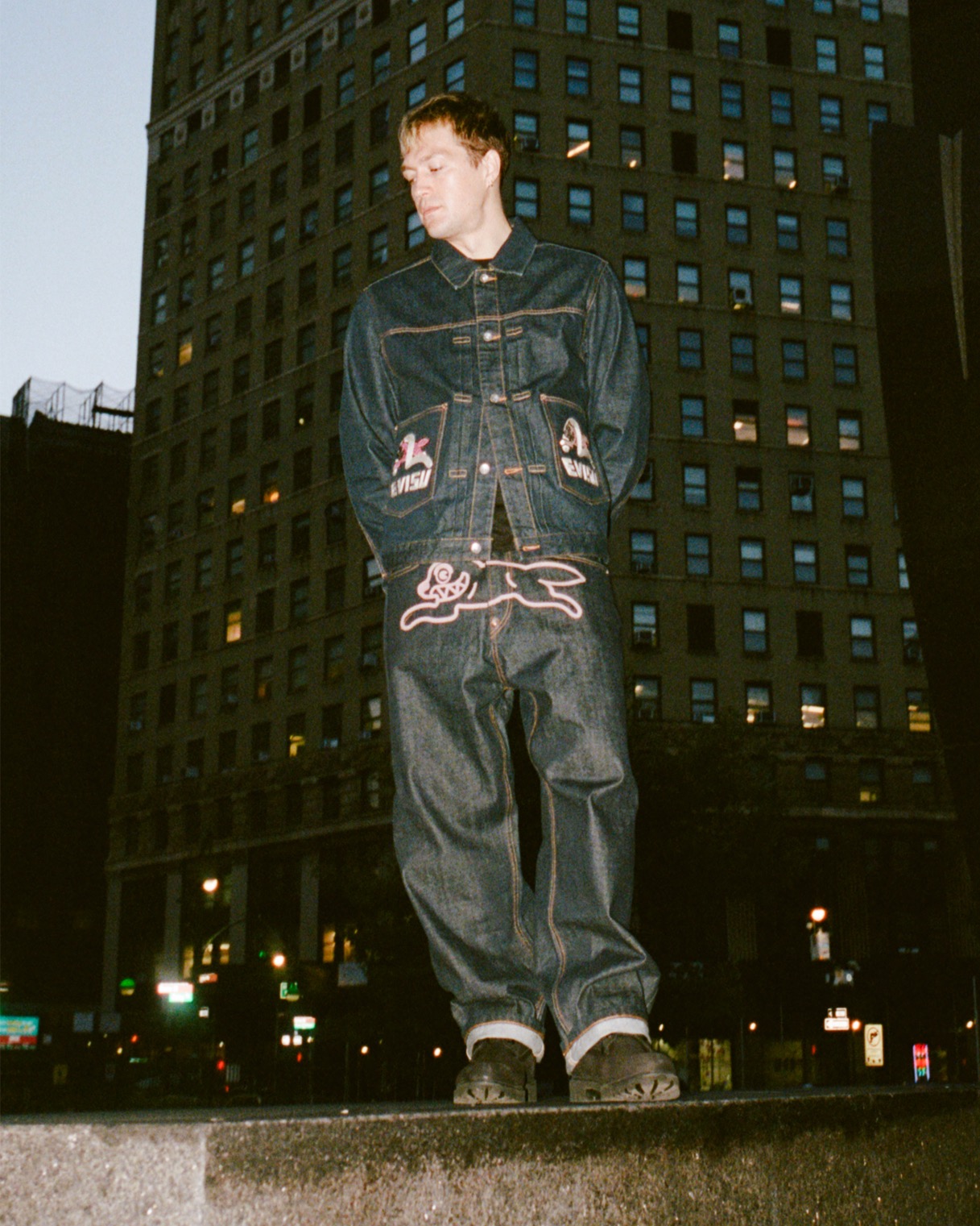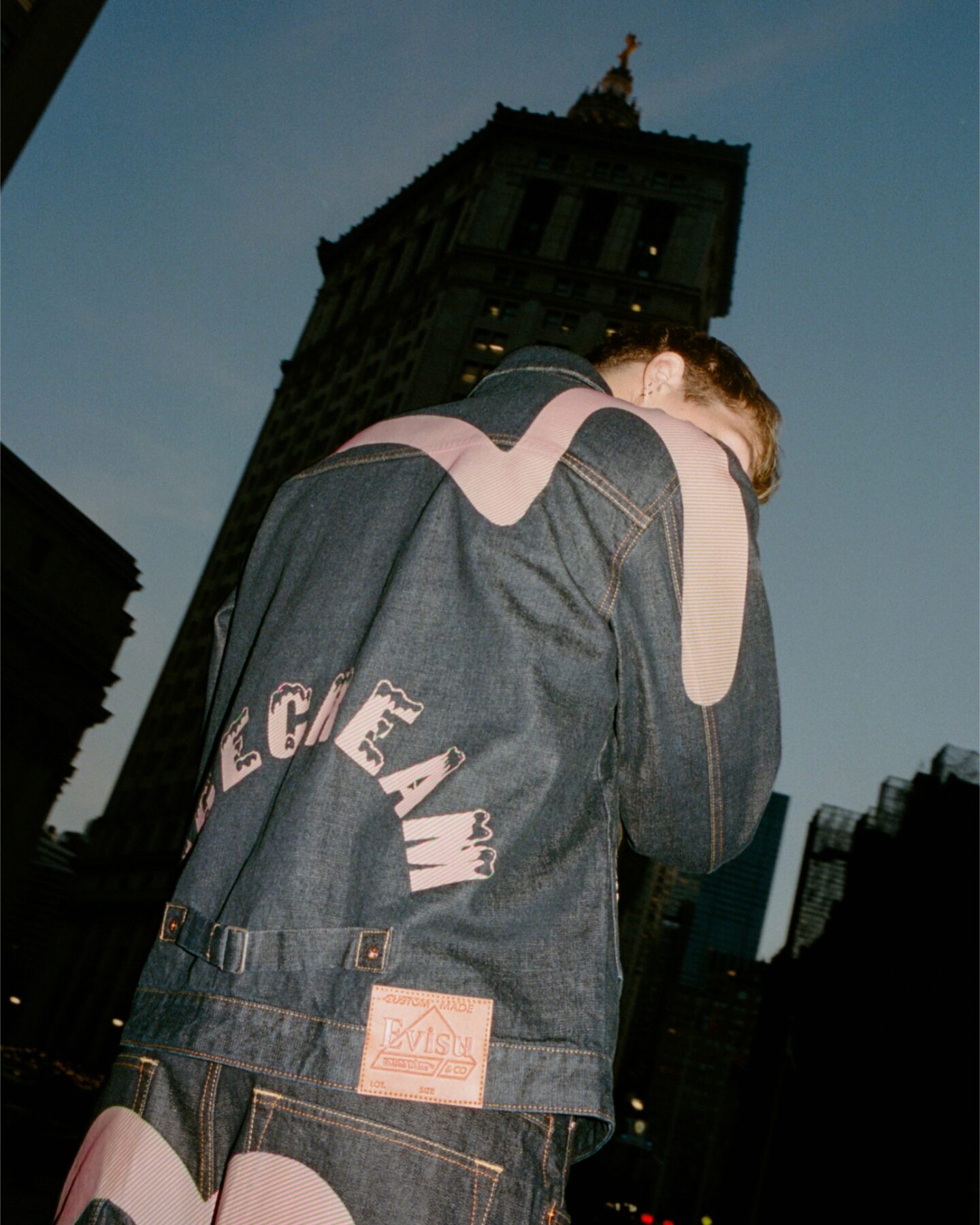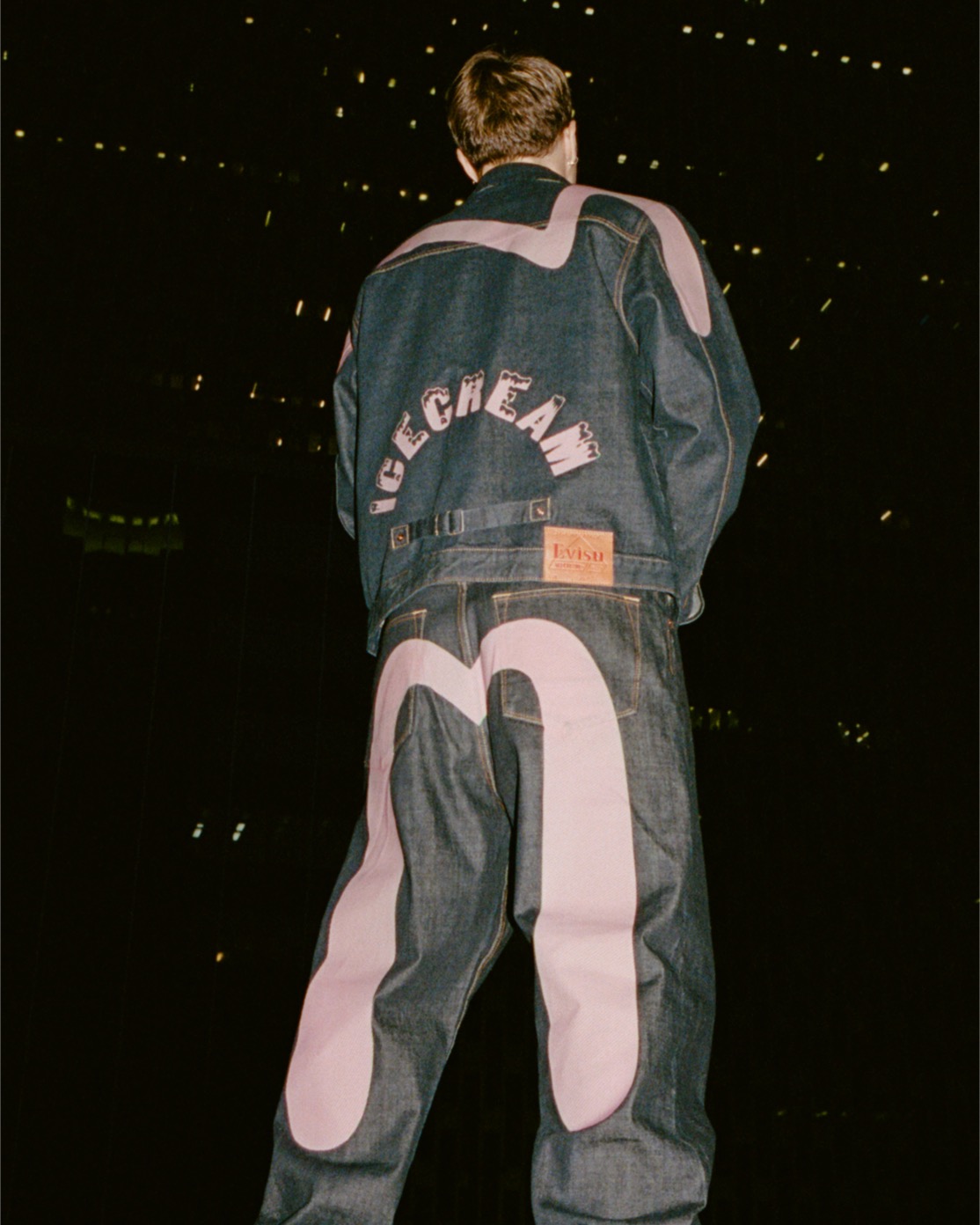 É impossível não pensar em Nigo. Se há uma razão para esta colaboração fazer sentido, é ele. Nigo não é apenas o cofundador da Icecream: ele é uma das figuras que mudou para sempre a relação entre o Japão, o denim e o streetwear global. Nos anos 90 e 2000, enquanto a moda americana se voltava para o luxo clássico, Nigo voltava-se para Osaka e a sua selvedge, para o arquivo artesanal, para a precisão japonesa. Essa influência é vista na colaboração entre a Evisu e a BBC Ice Cream. A partir daí, ele começou a misturar cultura pop, gráficos divertidos e luxo urbano — exatamente o DNA da Icecream. Portanto, quando a Evisu e a Icecream se uniram, esse diálogo já existia antes mesmo da cápsula existir. Assim, embora esta coleção não tenha o seu nome na etiqueta, ela traz a sua influência na forma como cada peça é construída.