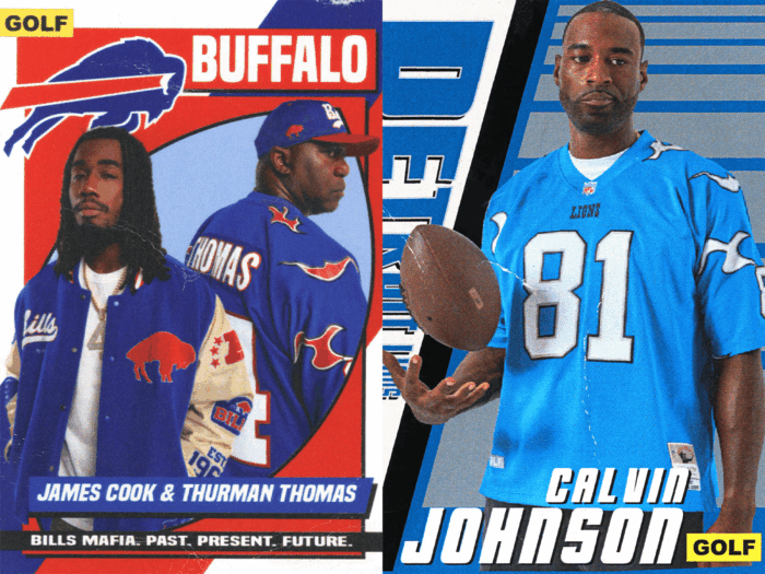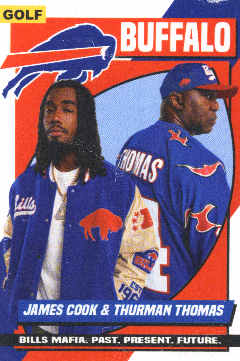 Para acompanhar o lançamento, a GOLF WANG reuniu figuras históricas do desporto e fãs muito conhecidos. A campanha conta com Troy Polamalu, Calvin “Megatron” Johnson e Thurman Thomas, todos membros do Hall da Fama. Também participa o jogador atual James Cook III, além de perfis emblemáticos dos fãs, como Brittney Payton e o famoso fã dos Ravens, Real Fan Dan.