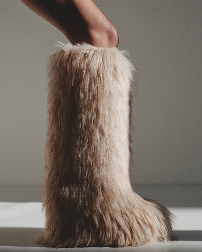 Depois, há as botas peludas, que parecem um cruzamento entre um yeti elegante e um editorial dos anos 2000. Elas não tentam ser discretas, nem precisam ser.