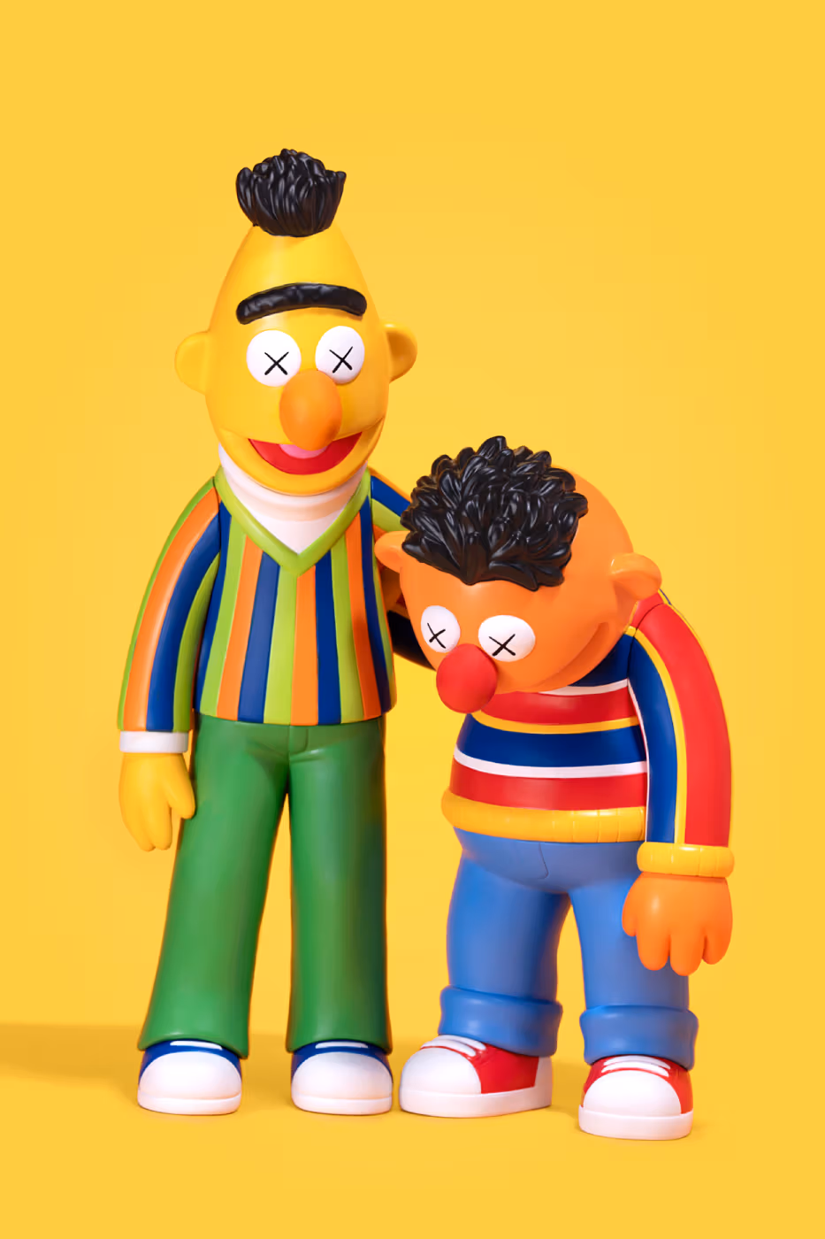 KAWS volta a unir forças com a AllRightsReserved para lançar uma nova colaboração com a Sesame Street. A coleção, que chega sete anos após a primeira parceria em 2018, reinterpretam os personagens mais queridos do programa infantil através da estética característica do artista. Os inconfundíveis X nos olhos e as poses inspiradas em figuras anteriores de KAWS fundem-se perfeitamente com o universo do icónico programa.