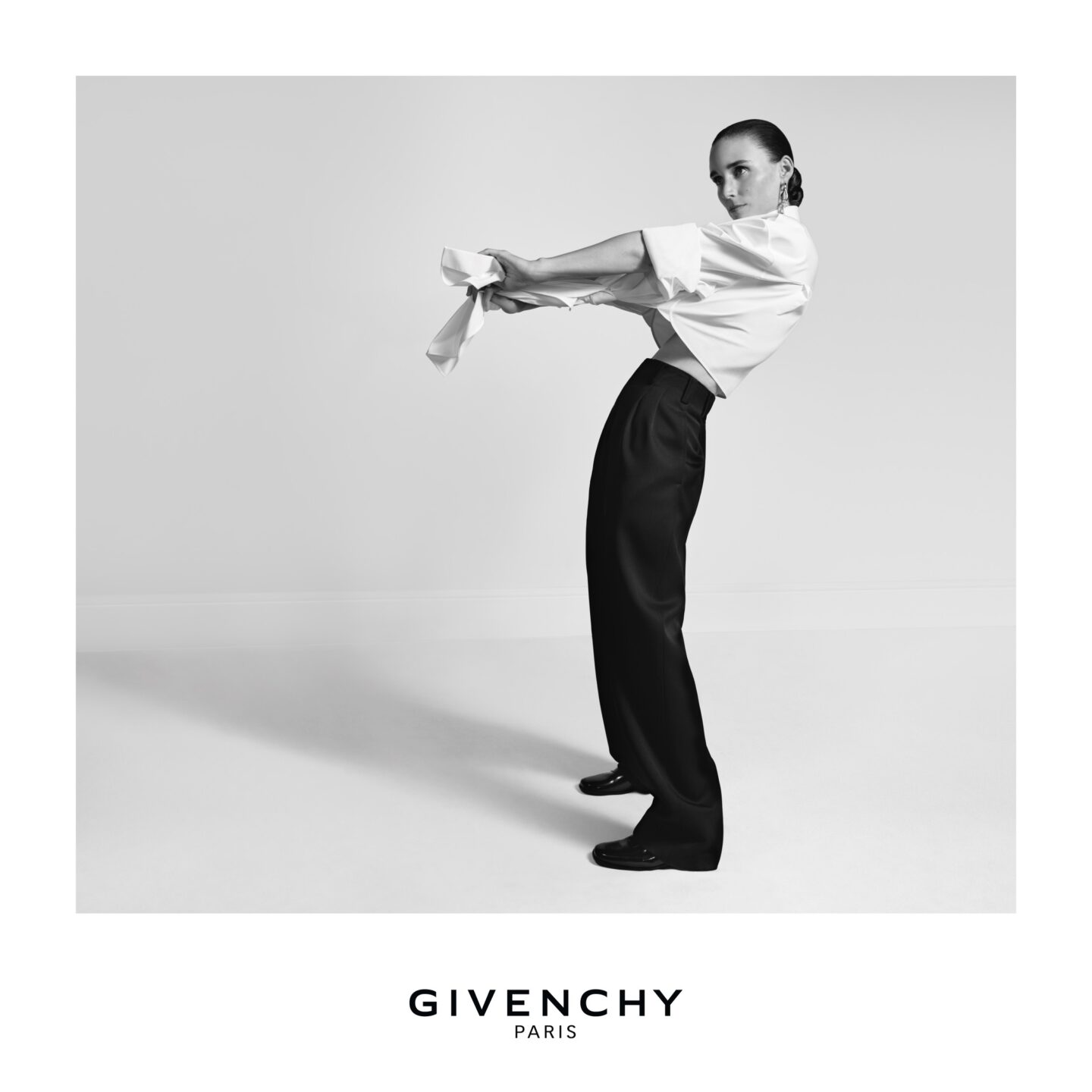 A campanha, com styling de Camilla Nickerson, exala autenticidade: roupas que parecem usadas, gestos que não procuram posar, uma elegância que não precisa de artifícios. Schorr capta essa tensão entre o requinte de Givenchy e a energia subversiva de Simonon, equilibrada pela presença contida e magnética de Mara.