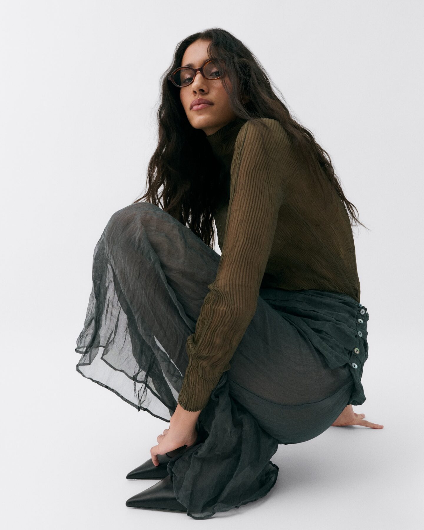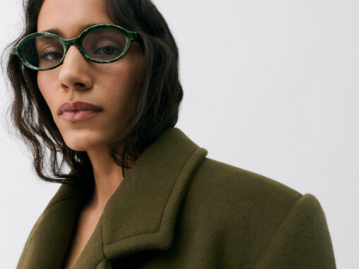 Entre os modelos mais destacados, Shale — uma armação quadrada oversize — encarna a solidez da terra, enquanto Moss — em verde marmorizado — reinterpreta o clássico cat-eye com um ar orgânico e contemporâneo. Brume e Amber, por sua vez, apostam em silhuetas pequenas e retangulares com acabamentos materiais que refletem força, modernidade e equilíbrio.
