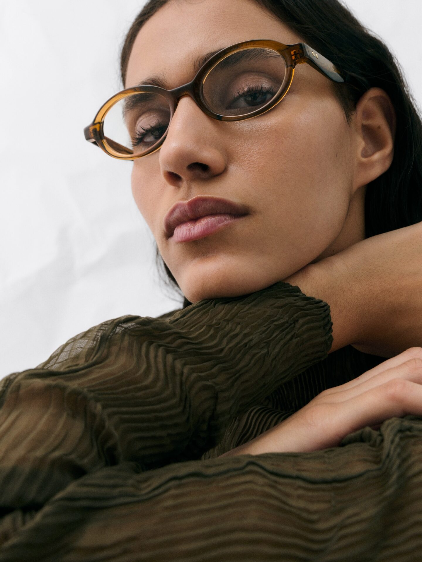 Nesta proposta, a marca sediada em Barcelona funde linhas geométricas com formas orgânicas que evocam texturas minerais e raízes entrelaçadas. Os tons outonais, profundos e serenos, envolvem cada design numa sensação de permanência e autenticidade. Em colaboração com Mazzucchelli, foram desenvolvidos acetatos com velas naturais que conferem uma riqueza cromática única e uma profundidade visual quase tátil.