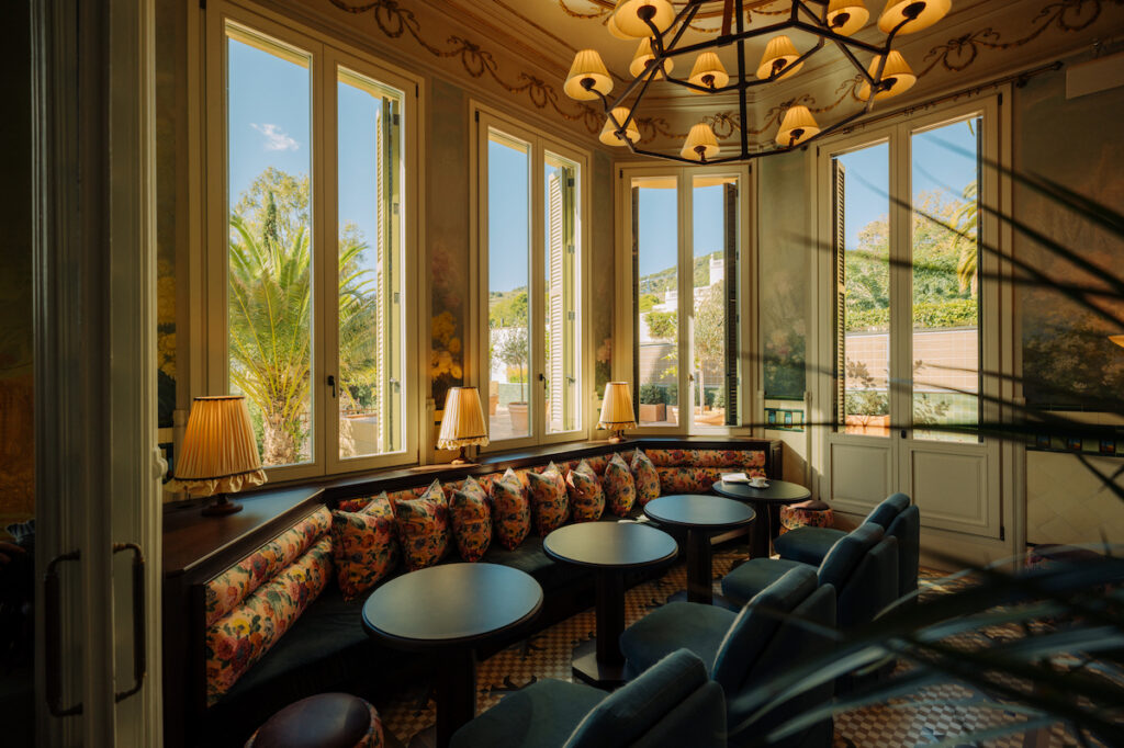 En la planta baja de la House se encuentran el jardín, la piscina y una zona adicional de comedor al aire libre. Al entrar por la puerta principal, los miembros encontrarán a la izquierda un amplio espacio de comedor exterior. Con suelos de terracota y piedra caliza, este área se integra en un jardín frondoso que crea una atmósfera privada e íntima. El espacio está amueblado con una mezcla de piezas vintage y hechas a medida, incluyendo bancos tapizados con una tela personalizada de Pierre Frey, dispuestos alrededor de un bar central y una fuente antigua. Este club situado en el jardín también ofrecerá un menú mediterráneo elevado, con una selección de platos cocinados en horno de leña, como rib eye con hueso, lenguado mediterráneo y canelones de rabo de toro.