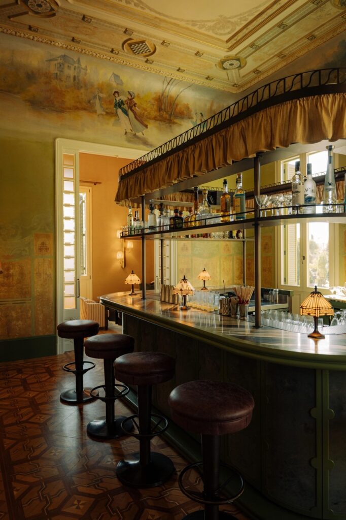 Entre las principales estancias destaca The Living Room, que conserva su parquet original y alberga el Martini Bar, con bancos de cuero alrededor de la barra y vistas a la piscina. Su nombre proviene de los frescos del techo que representan a la familia original jugando. Otras salas se inspiran en los viajes europeos de la familia. The Salon, de aire parisino, cuenta con suelos de parquet decorado, paneles de seda y molduras originales, además de grandes ventanales con vistas a la piscina y al Tibidabo.