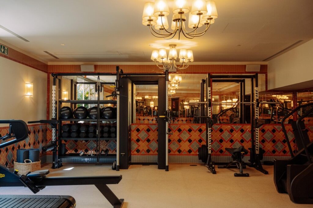 El gimnasio se encuentra en la planta baja de la House. Diseñado con paredes de azulejos decorativos que hacen referencia a la cerámica tradicional del edificio, cuenta con apliques a medida y suelos de terracota. Está equipado con pesas libres, máquinas de cardio y un pequeño estudio que se abre al patio interior, donde se imparten semanalmente clases en grupos reducidos de Pilates, Yoga, Strength y Precision Sculpt, un nuevo concepto creado específicamente para Barcelona, además de sesiones de entrenamiento personal.