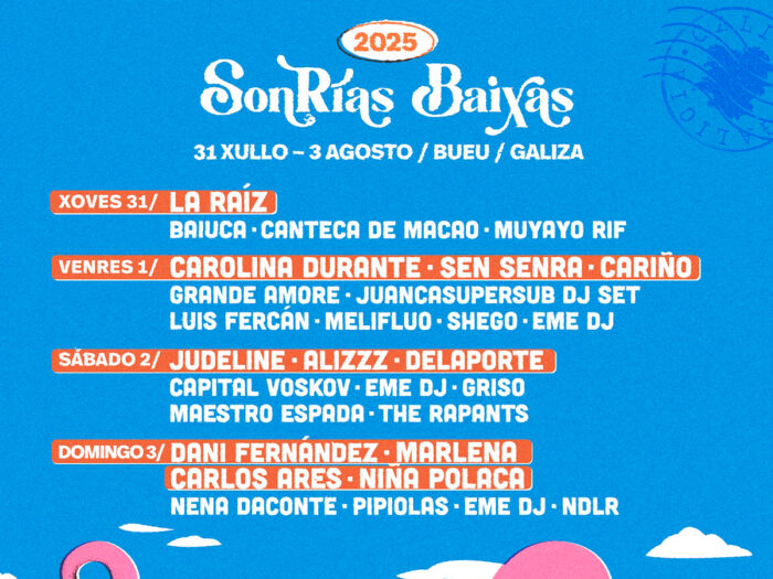La organización ha desvelado un cartel con 24 artistas que combina nombres consagrados, voces emergentes y talento gallego. Sen Senra, Carolina Durante, Judeline, Dani Fernández, Alizzz, Delaporte y Nena Daconte destacan como algunos de los grandes atractivos del festival, que también contará con formaciones como Cariño, Niña Polaca, Shego, Marlena, Vega y The Rapants. El festival apuesta una vez más por la paridad, con más del 50 % de las bandas lideradas o integradas por mujeres.