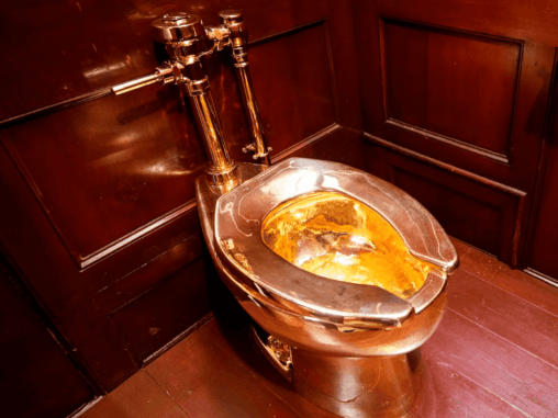 La historia del inodoro de oro también tiene su propio capítulo policial. En 2019, robaron una de las dos versiones de «America» del Palacio de Blenheim, en Inglaterra. Este año, las autoridades detuvieron y condenaron a dos hombres implicados en el robo, aunque la obra sigue sin aparecer.