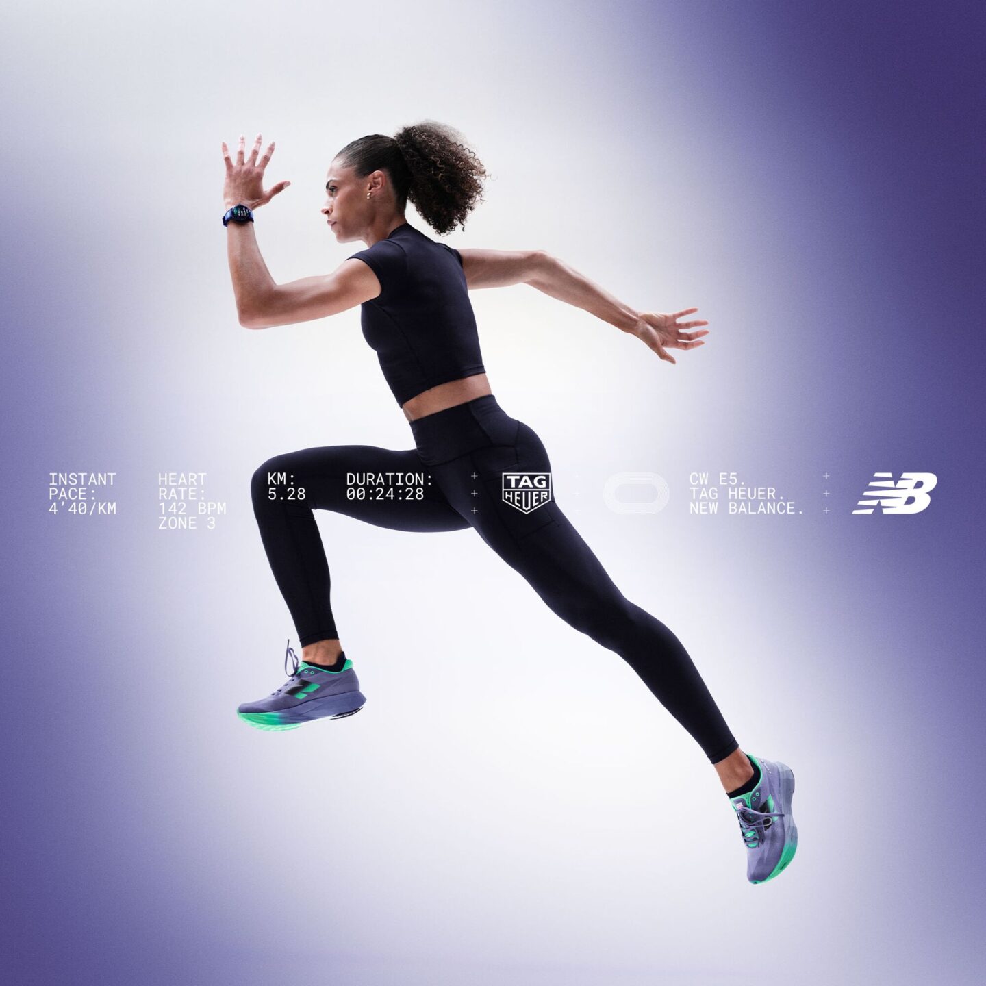 TAG Heuer y New Balance anuncian una colaboración que une la tecnología suiza y el rendimiento deportivo: el TAG Heuer Connected Calibre E5 40MM x New Balance Edition y las zapatillas FuelCell SuperComp Elite v5.