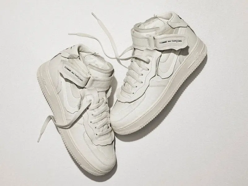 Pudimos ver por primera vez la colaboración de COMME des GARÇONS y Nike Air Force 1 Mid a principios de este año durante su show FW20.