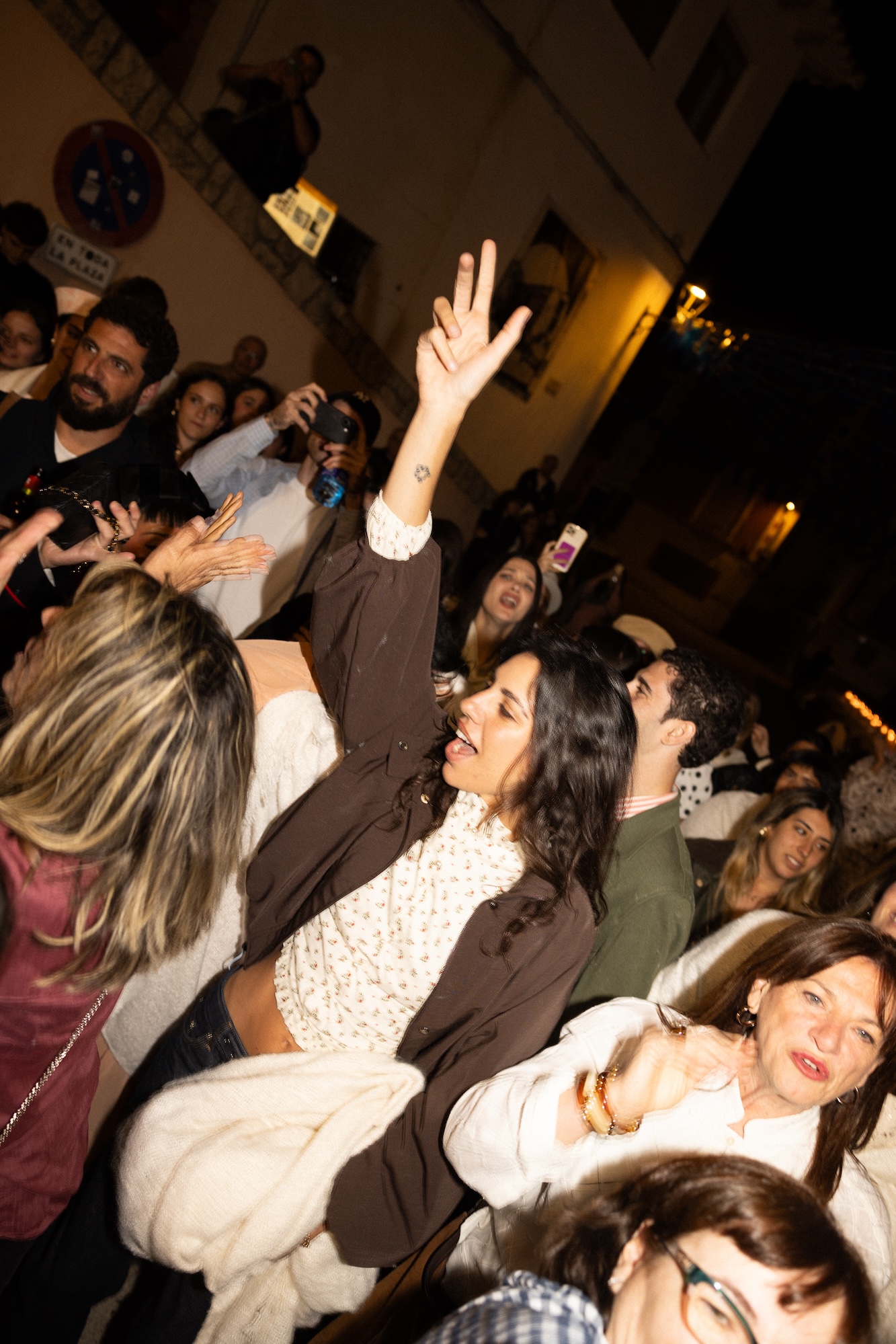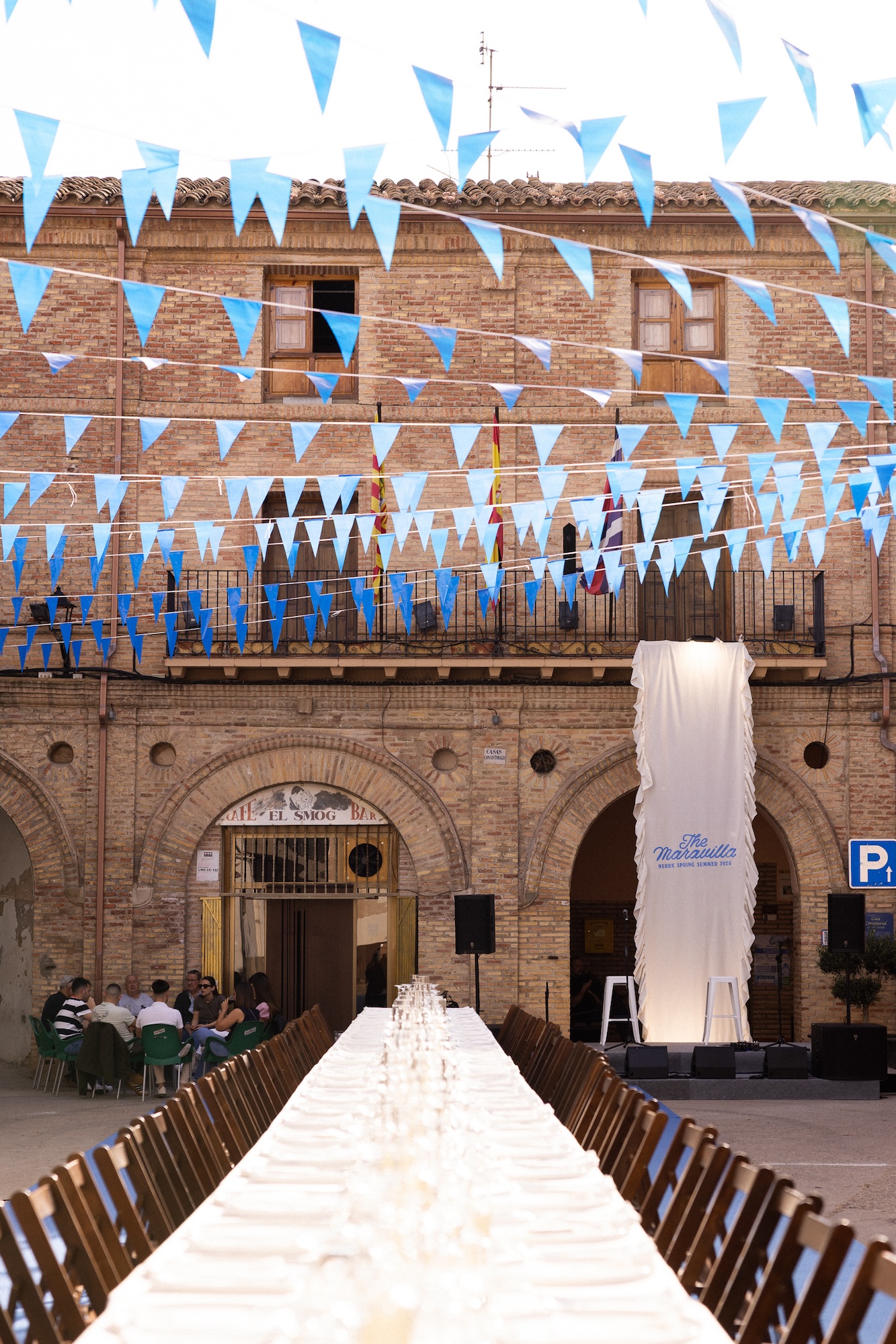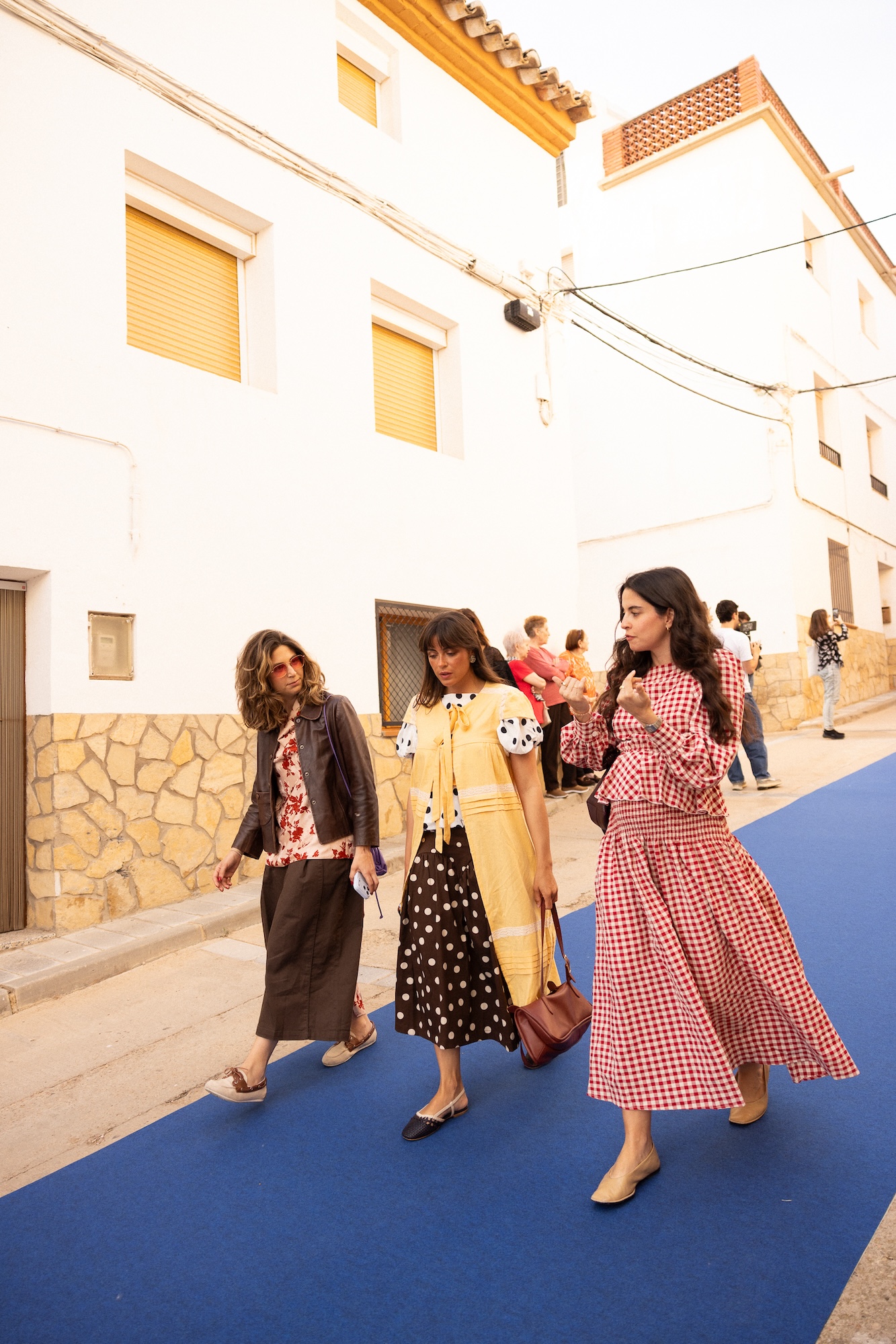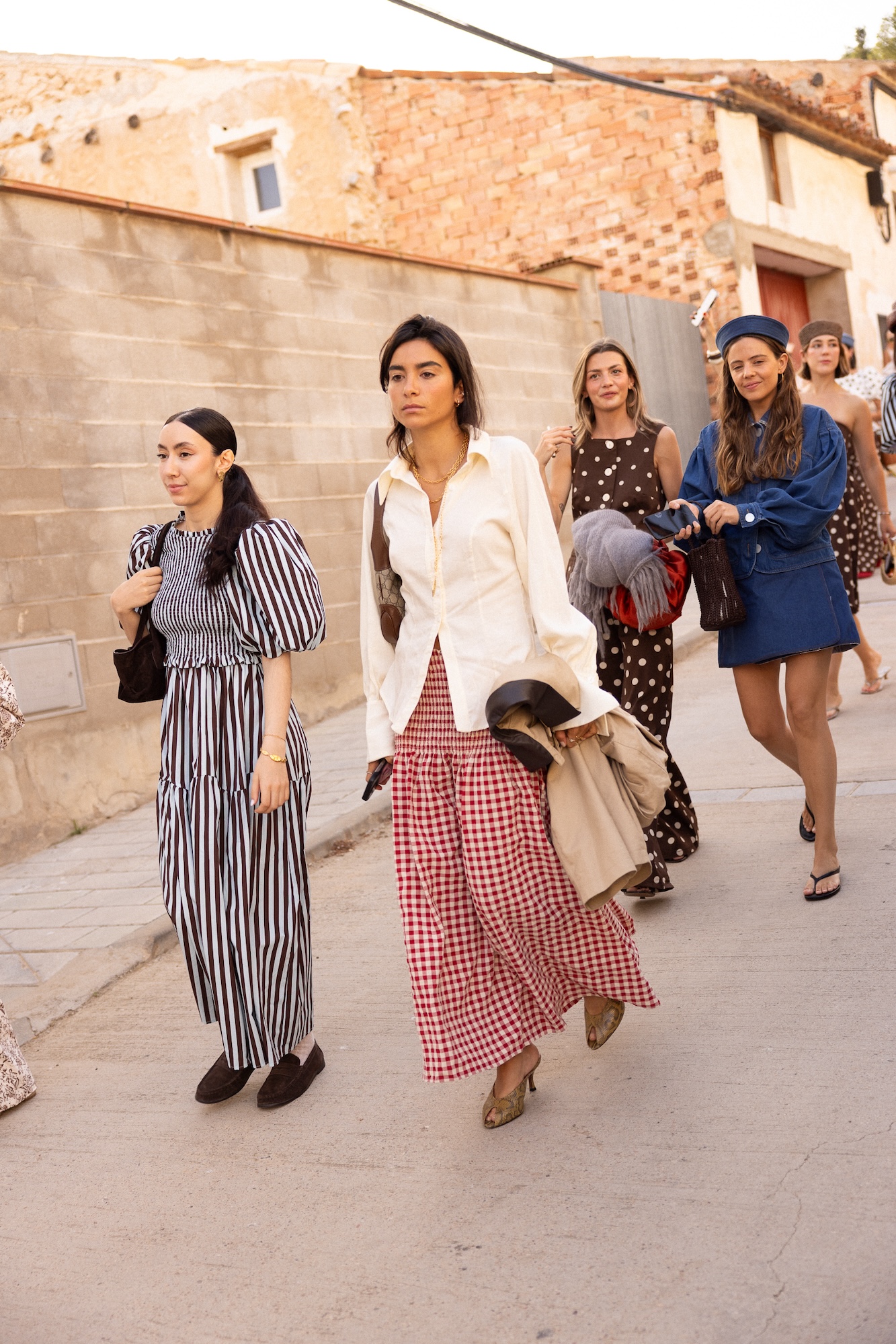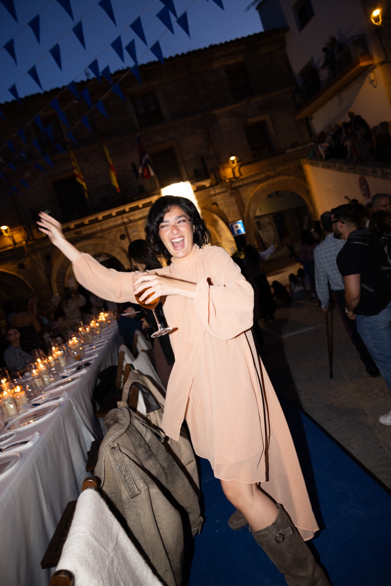 Fue justo después cuando irrumpió ante nosotros una tamborada tradicional, con el objetivo de guiarnos a otro de los enclaves más icónicos de Urrea de Gaén en una procesión que mezclaba moda y folclore, por supuesto. En la plaza del pueblo, la noche se abrió paso a nuevas emociones con un concierto íntimo de Bego Vargas, que nos deleitó con su acústico. Y al mismo tiempo, una mesa infinita para más de 100 invitados se abría paso justo el centro para acoger una cena donde pudimos degustar lo mejor de la gastronomía aragonesa desde una perspectiva actual.
