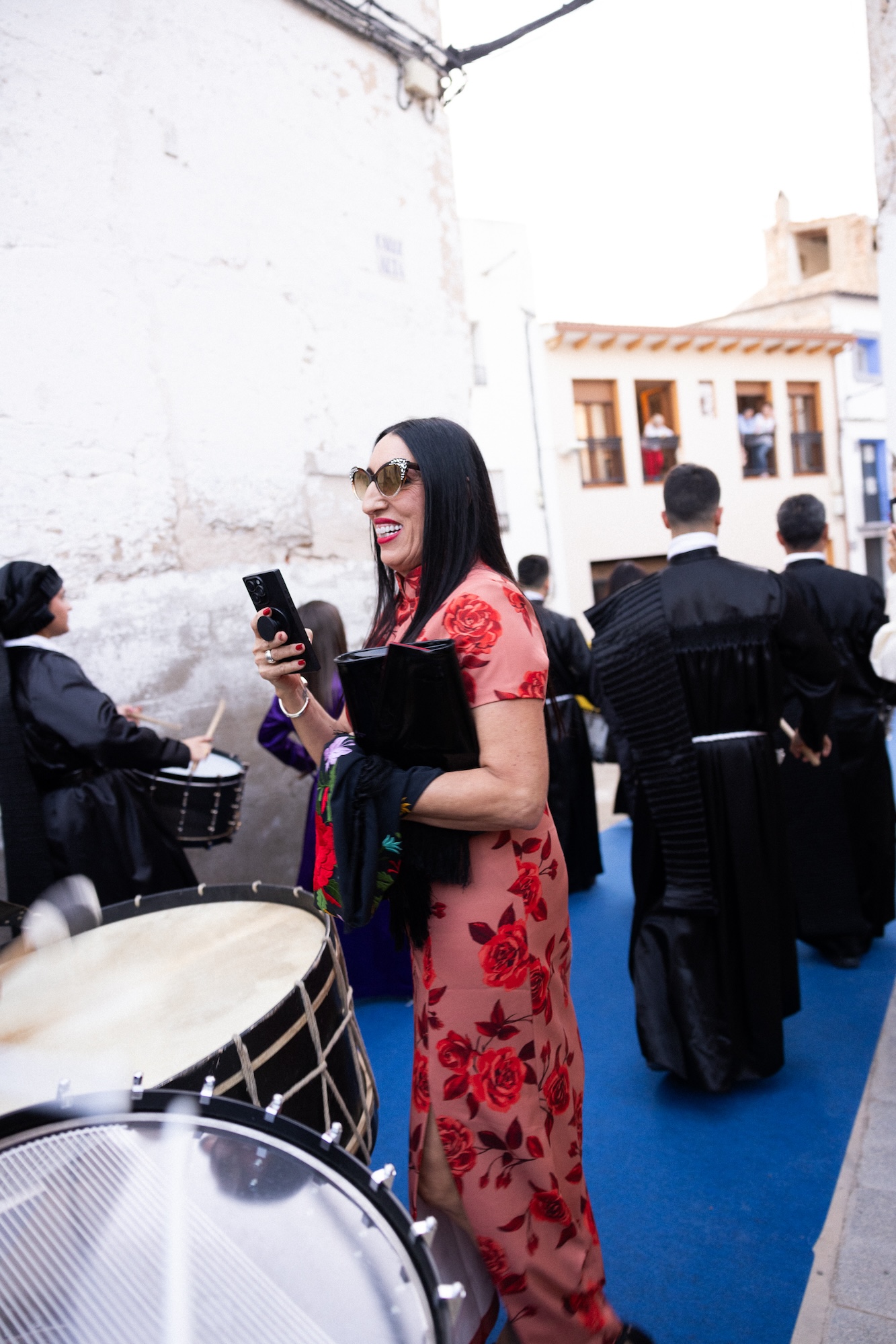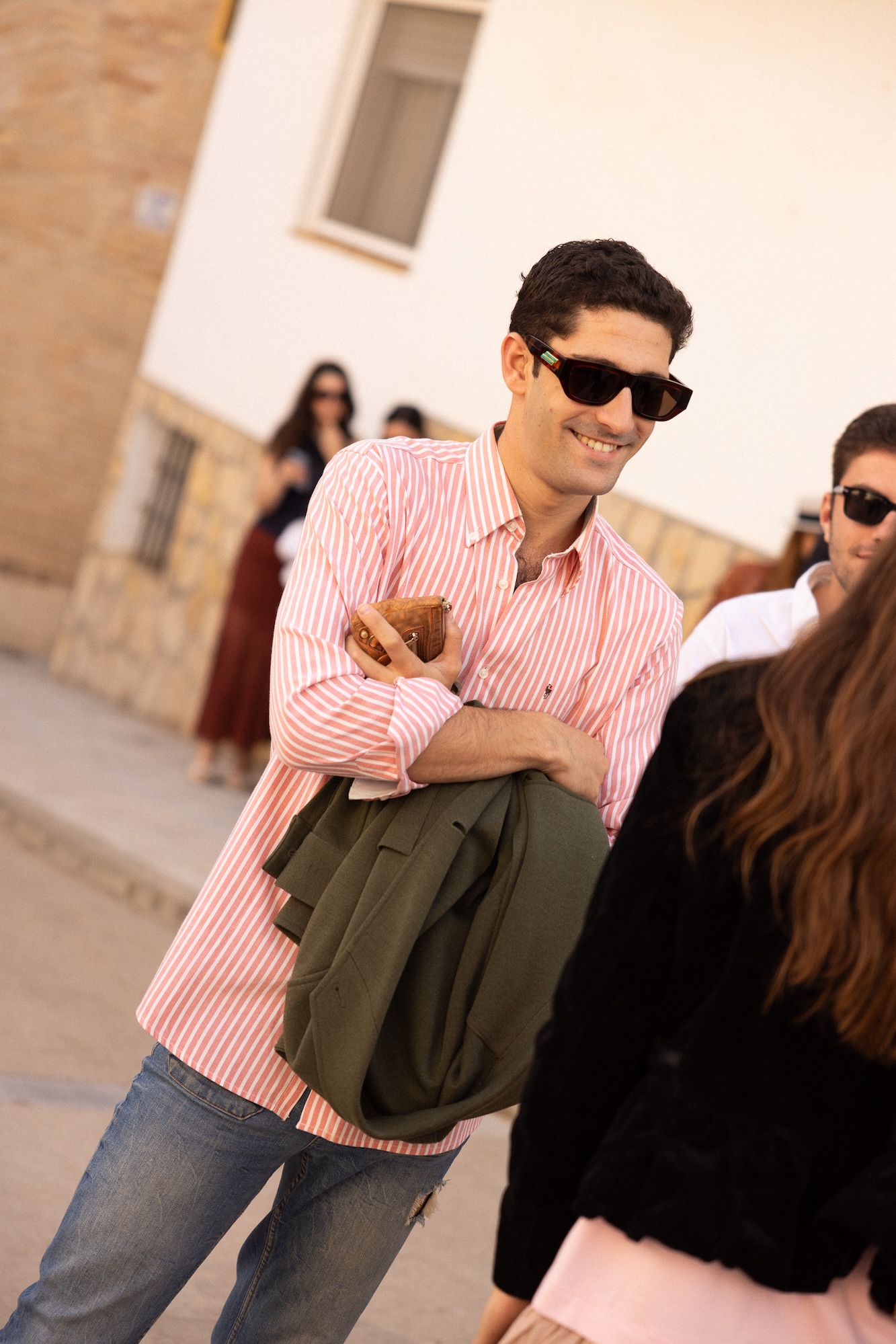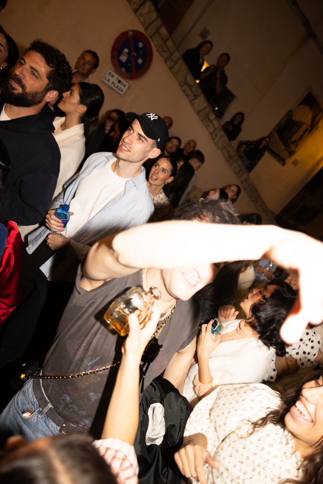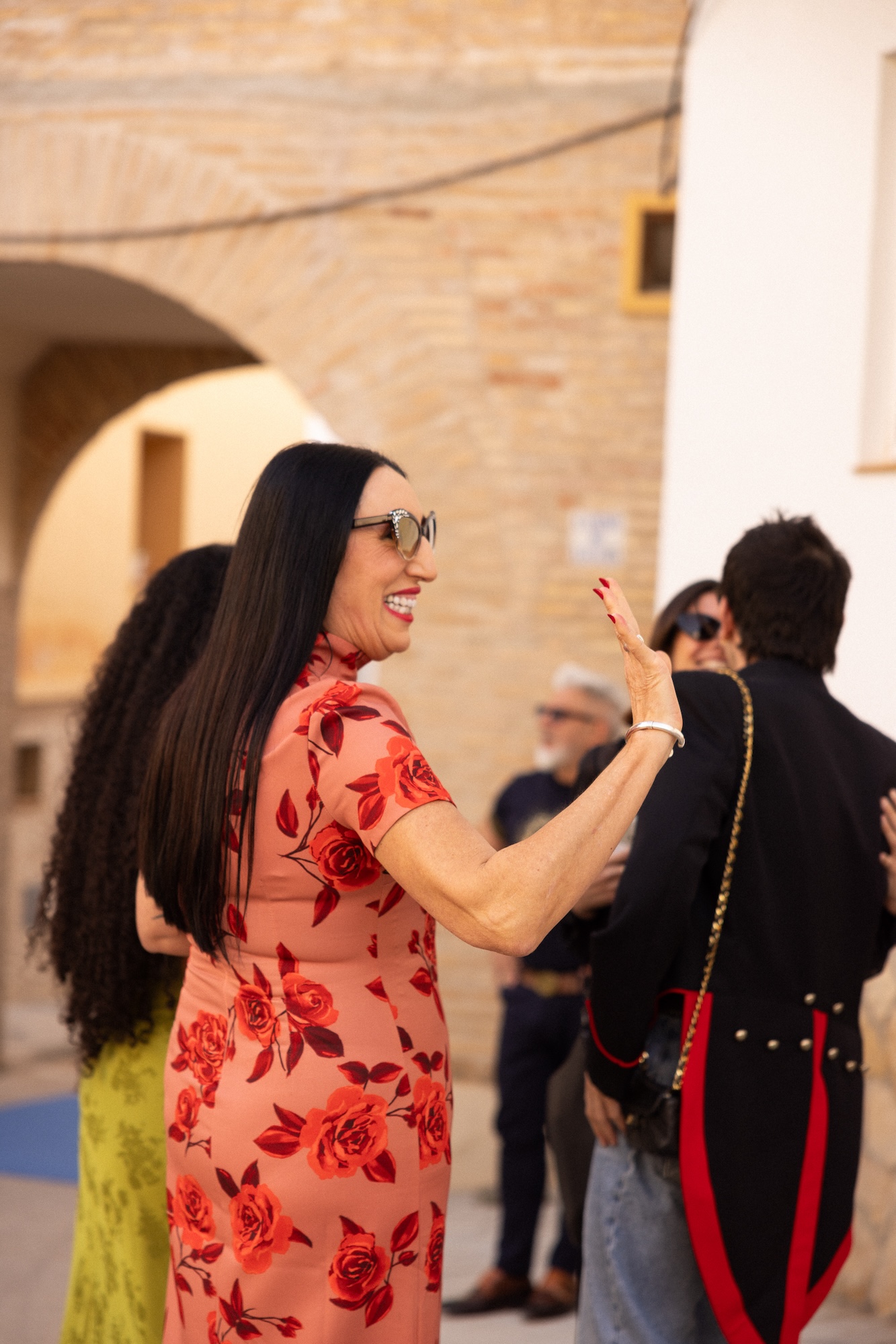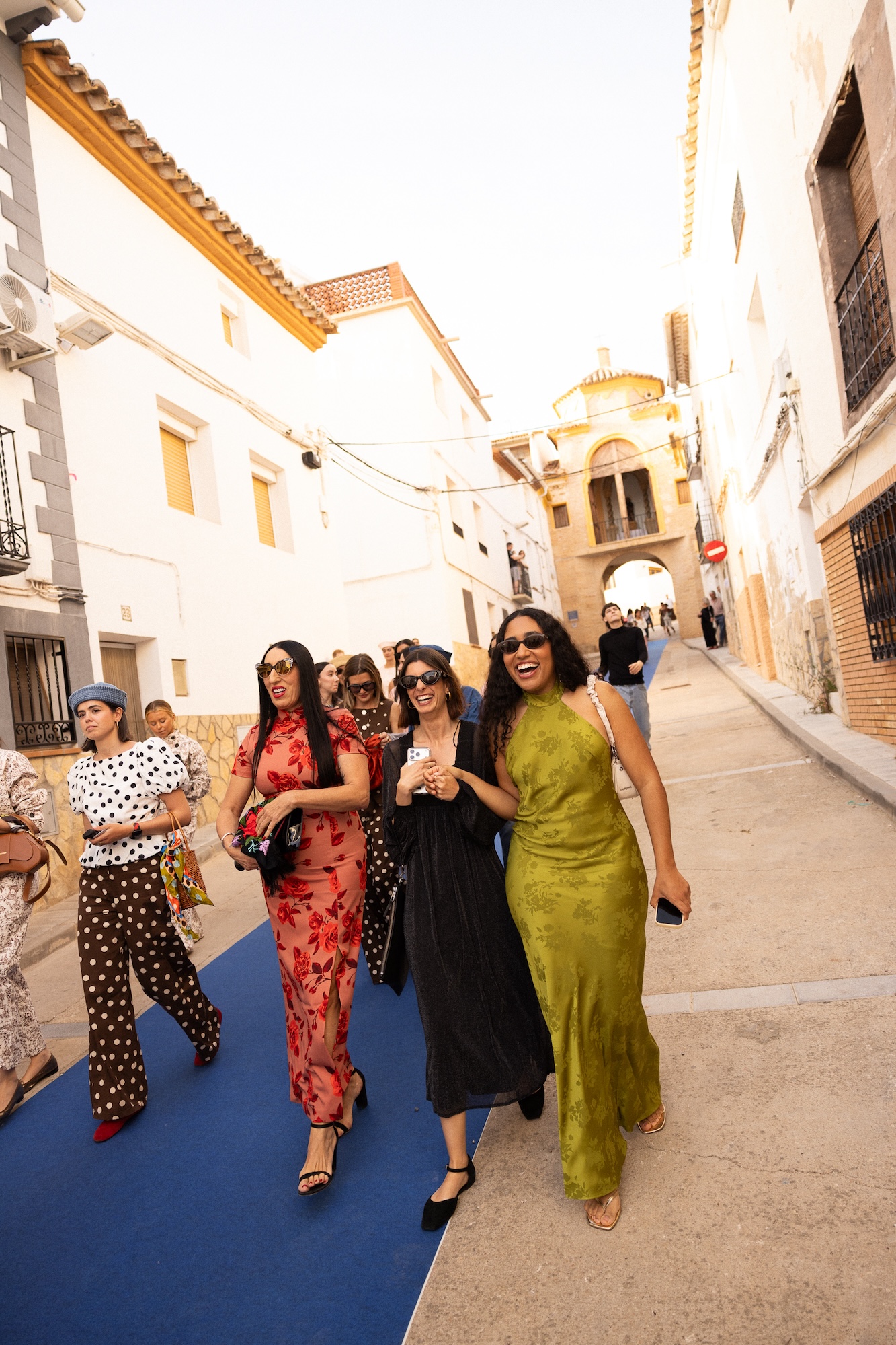De la mano de FuturaProject, NURRK transformó este municipio aragonés en el epicentro de una propuesta inmersiva que desdibujó los límites de lo que entendemos por desfile, tradición y celebración colectiva. Desde el primer momento, el encuentro dejó claro que no habíamos viajado hasta allí para ser testigos de una simple presentación. Nada más llegar, nos recibieron a las puertas del pueblo en un gesto que marcaba el tono de lo que estaba por venir: cada uno de nosotros recibimos las medidas de la Virgen del Pilar, un detalle cargado de simbolismo y conexión con el territorio. Después, comenzamos el recorrido por el pueblo, acompañados de amigas y amigos como Rossy de Palma, Alejandro Palomo, Carla Paucar, Helena y Lucia Cuesta o Carla Menéndez, entre muchas otras, hasta llegar a la ermita de San Roque.