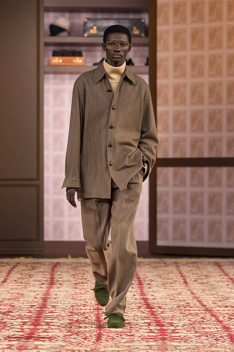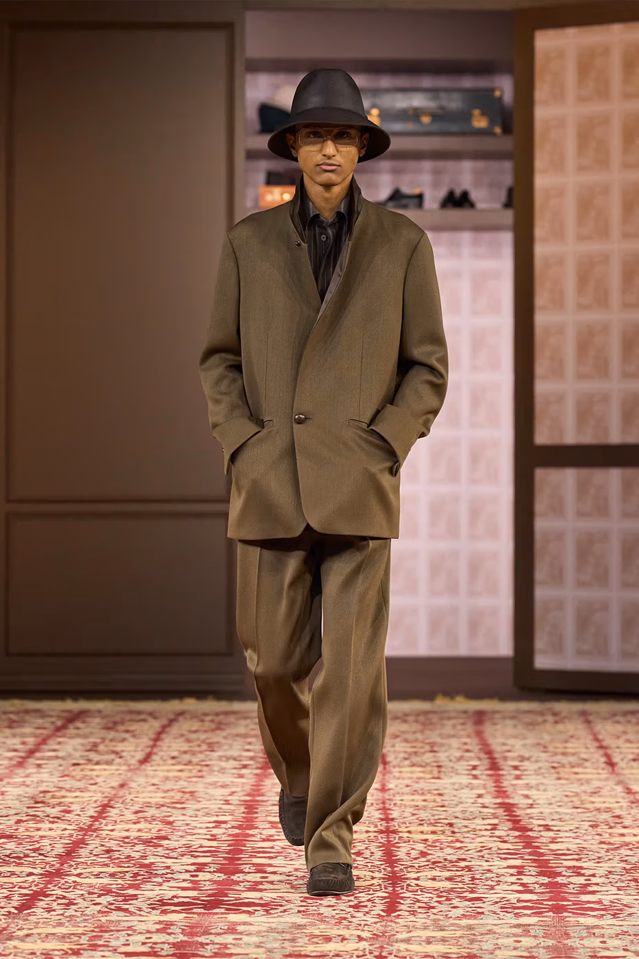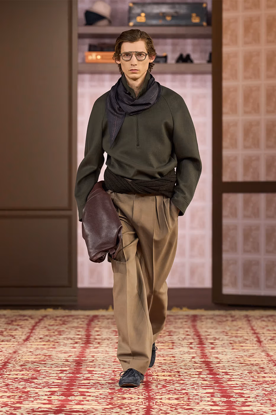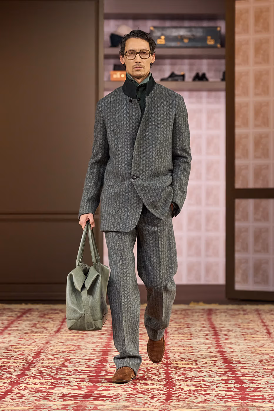 Para reforzar esta idea, el desfile tuvo lugar en un espacio ovalado rodeado de piezas pertenecientes a cuatro generaciones de la familia Zegna. Entre ellas destacaba la primera chaqueta confeccionada por el fundador en 1930. De este modo, la puesta en escena subrayó el mensaje central de la colección. Cuando el diseño y los materiales están pensados para durar, la moda deja de ser pasajera y se transforma en legado.